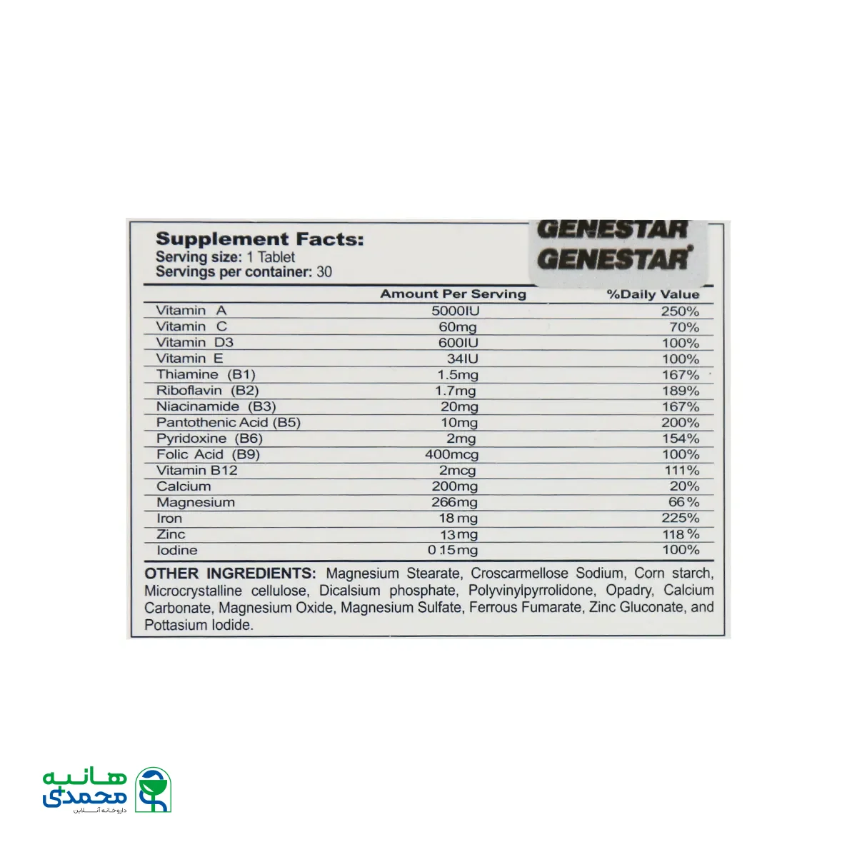 • مولتی ویتامین + مینرال ژن استار حاوی ویتامین‌ها و مواد معدنی مورد نیاز بدن