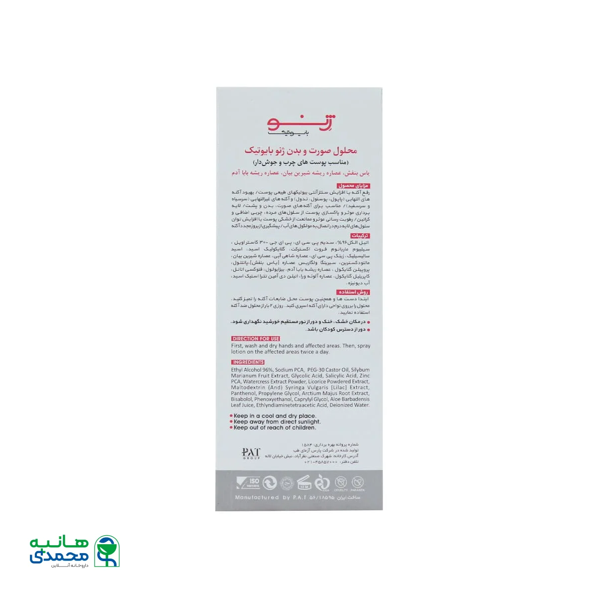 محلول ضد آکنه صورت و بدن سبوژن 2 ژنوبایوتیک 100 میلی لیترGeno Biotic SebuGen 3 Anti Acne Lotion 100 ml