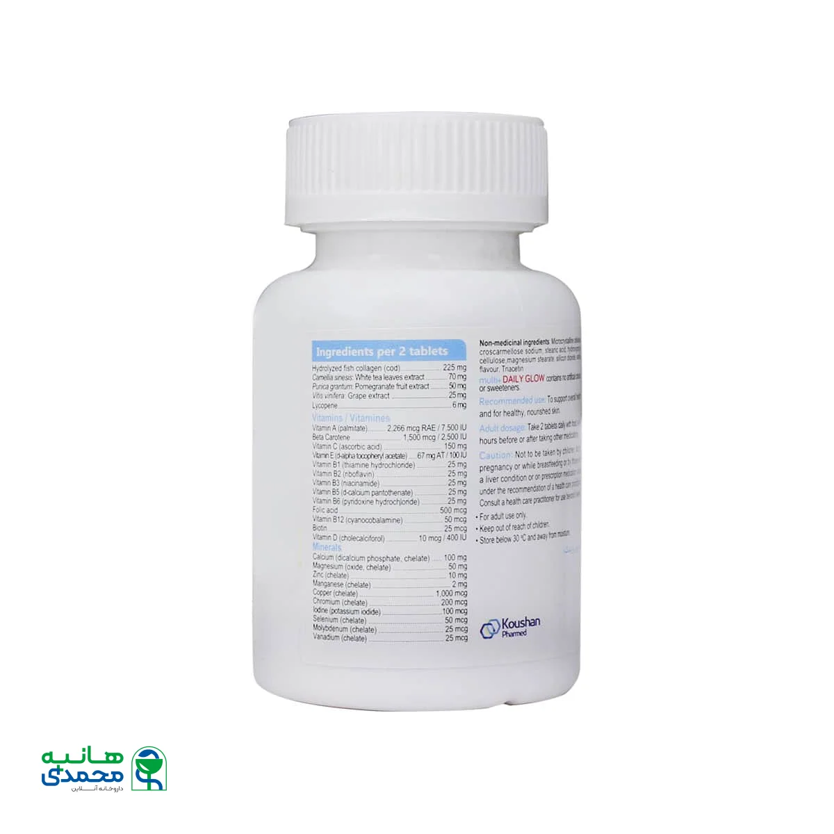 قرص مولتی پلاس دیلی گولو جنیون هلث تحت لیسانس شرکت جنیون هلث کانادا، دارنده پروانه ساخت شرکت کوشان فارمد و در داروسازی رها تولید شده است. این مکمل با داشتن ویتامینها، مواد معدنی و لیکوپن و کلاژن به تغذیه و حفظ سلامت پوست کمک موثری میکند. دیلی گولو فاقد رنگ و شیرین کننده مصنوعی است. از این قرص میتوان به عنوان مکمل برای حفظ توان بدن در طول رژیمهای مختلف استفاده کرد. ترکیبات موثر این محصول علاوه بر سلامت پوست به تقویت سیستم ایمنی بدن و ارتقا سلامتی کمک میکند.