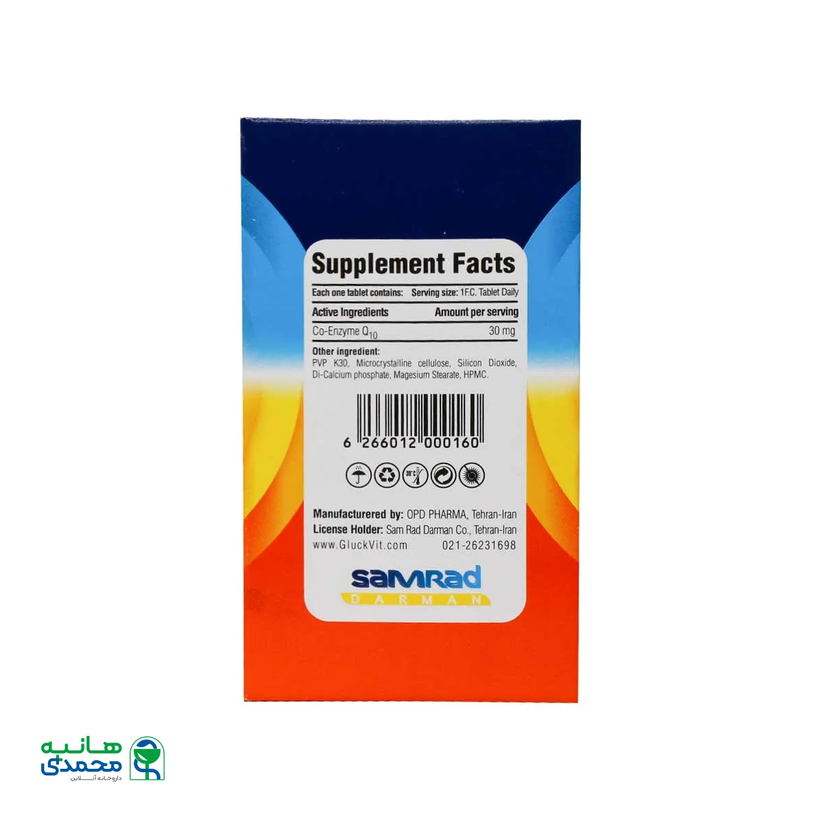 قرص کوکیوتن 30 گلوک ویتGluck Vit CoQ10 30 Mg 30 F.C Tablets
