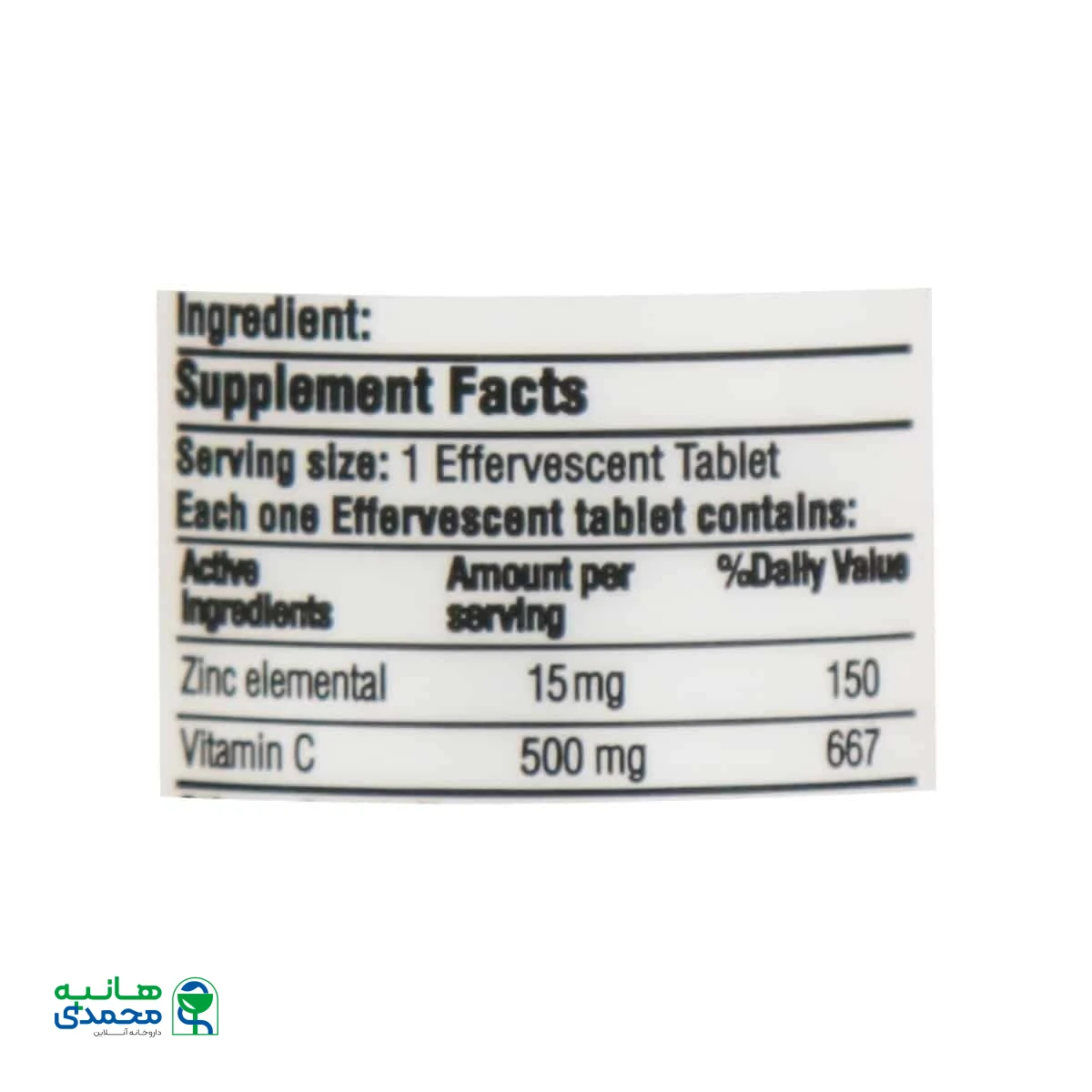 | زینک | 15mg | 150% |