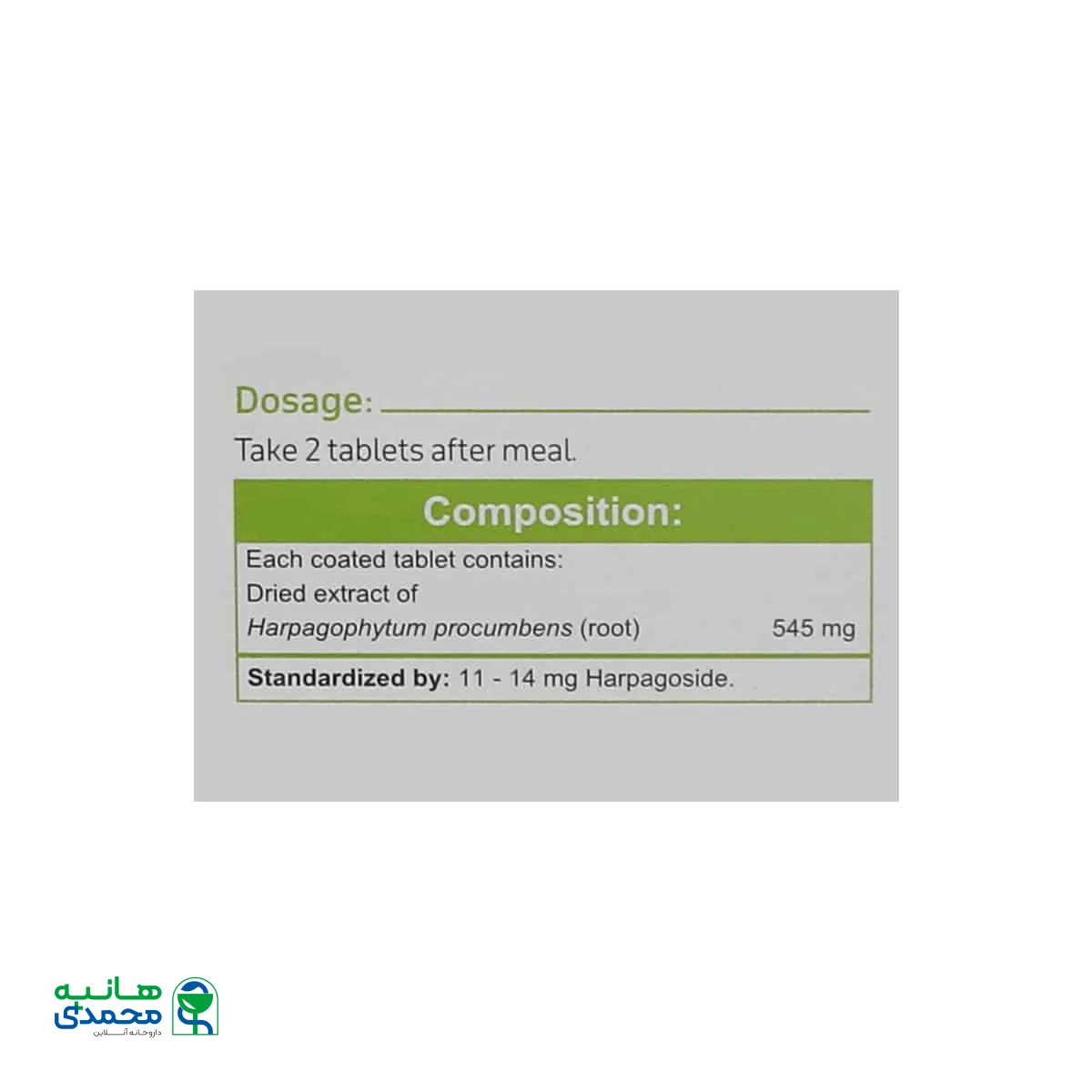 | عصاره گیاه پنجه شیطان | 480mg | ** |
