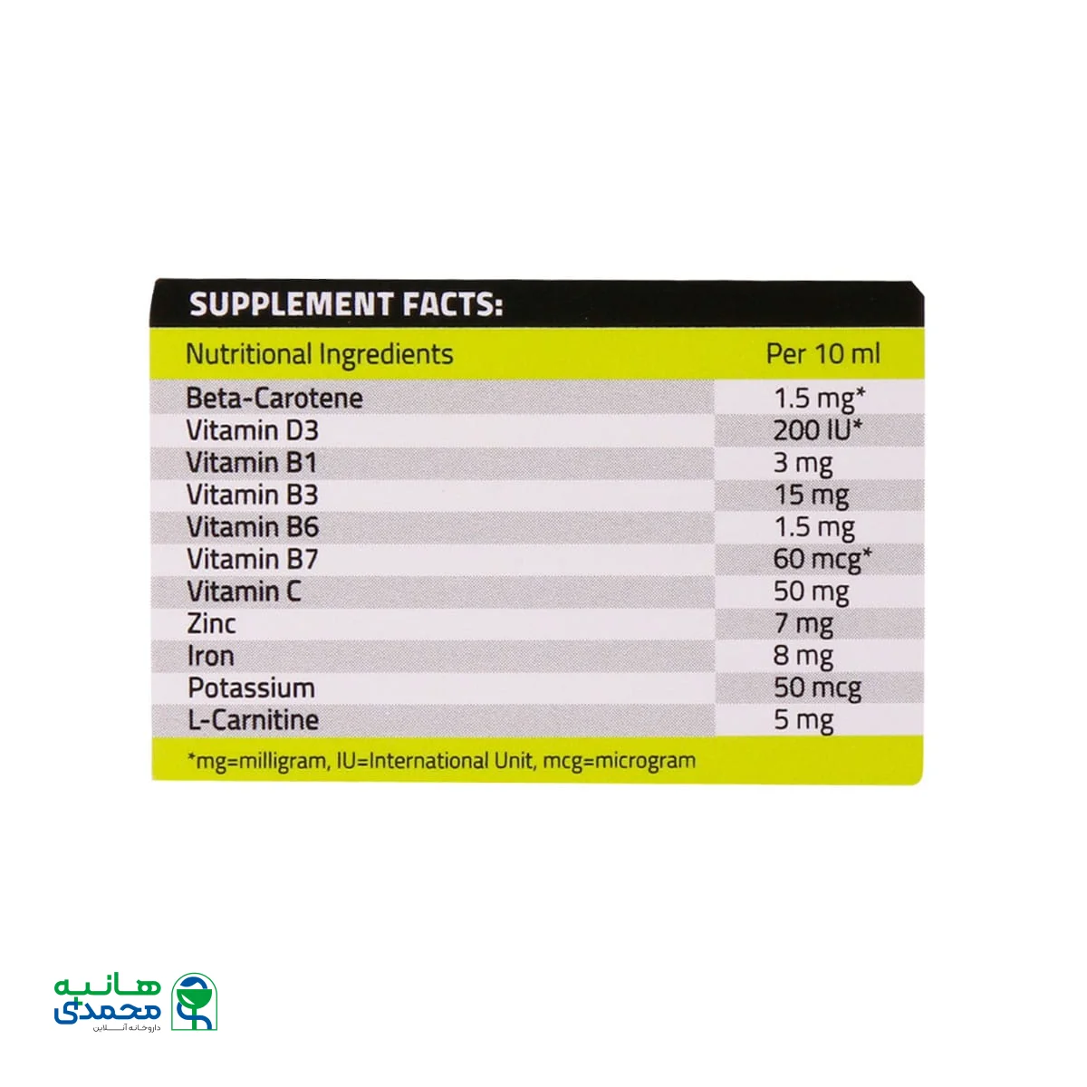 g = گرم / mg = میلی گرم / µg یا mcg = میکروگرم / IU = واحد بین المللی