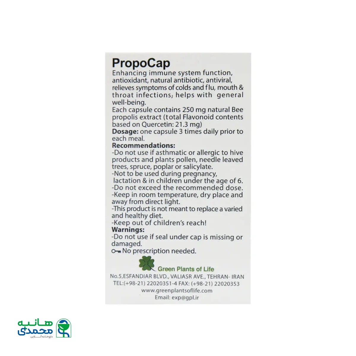 • هر کپسول حاوی 250 میلی گرم عصاره طبیعی پروپولیس