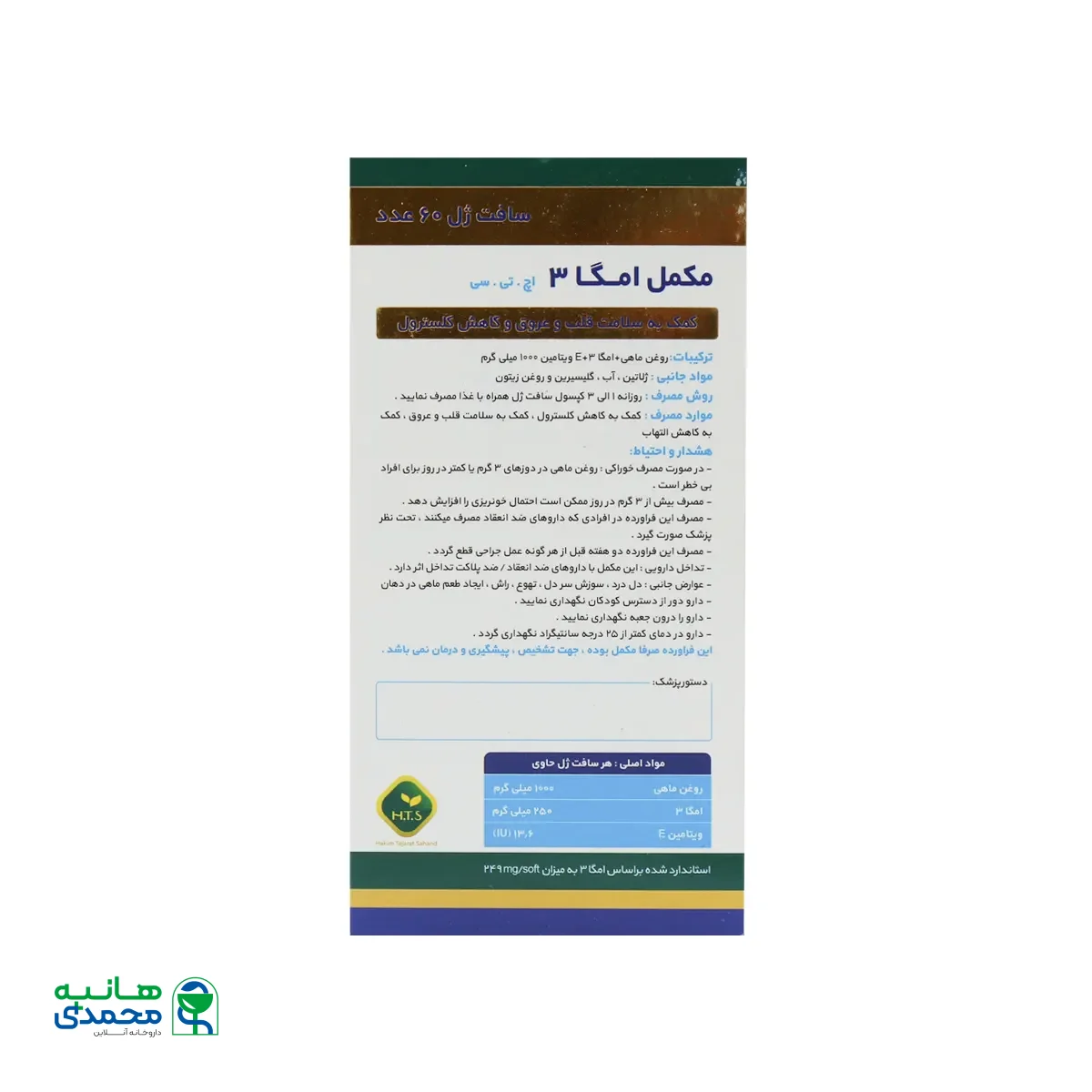 مشخصات کلیH T S Omega 3 1000 Mg 60 Softgels