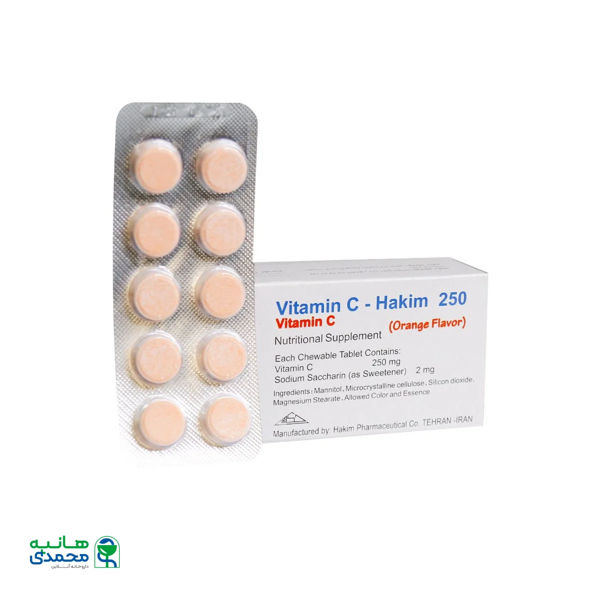 قرص جویدنی ویتامین C 250 حکیم یک آنتی اکسیدان قوی که به تامین ویتامین C مورد نیاز بدن پرداخته و سبب تقویت سیستم ایمنی فرد می‌شود.
