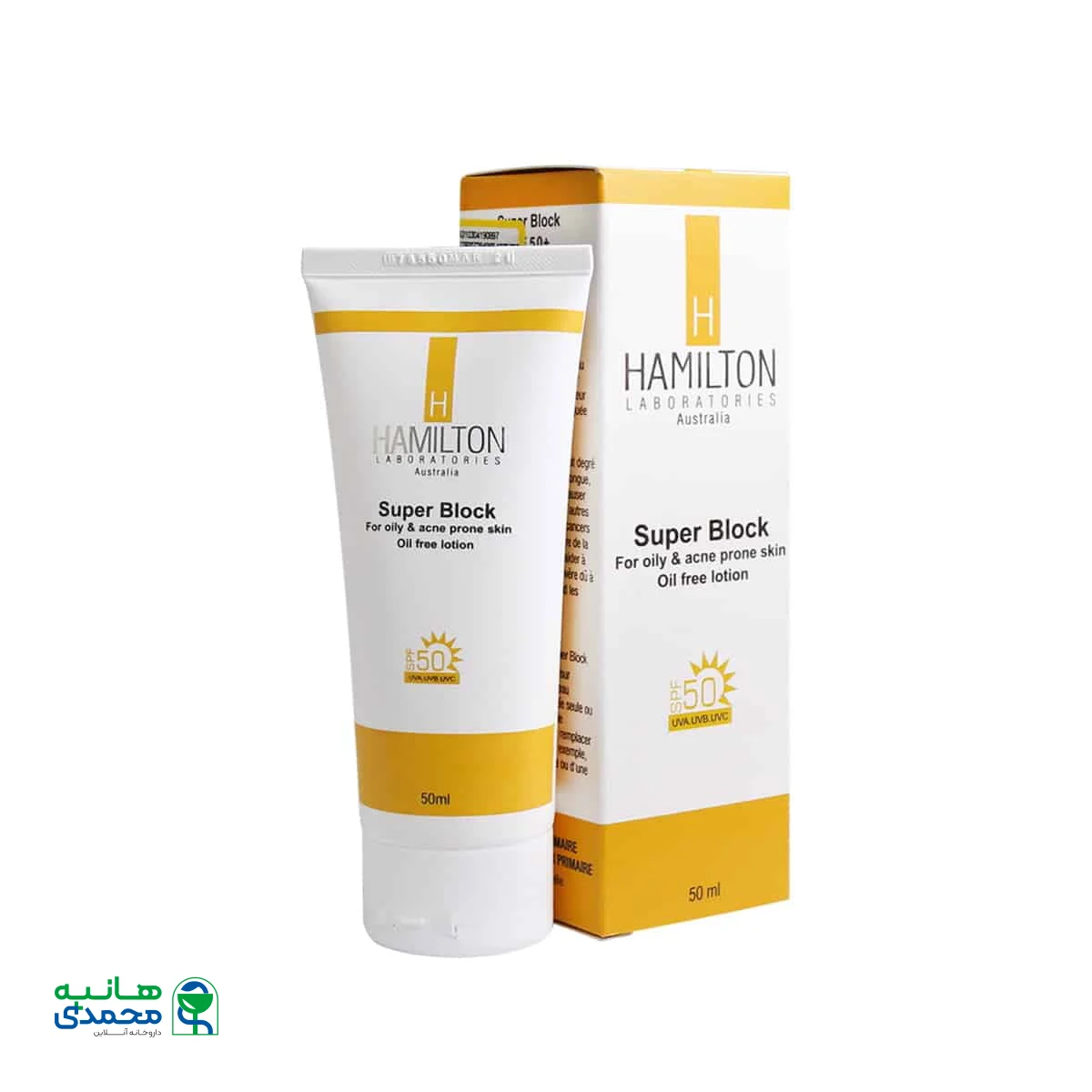 لوسیون ضد آفتاب SPF50 همیلتون از پوست در برابر اشعههای مضر UVA ،UVB و UVC محافظت میکند. این لوسیون دارای اثر حفاظتی بالا و همچنین خاصیت ضد چروکی و آبرسان قوی است که از پیری پوست جلوگیری میکند. این محصول ضد آب، ضد آلودگی و فاقد عوامل محرک پوستی است. این محصول با وجود عصارههای گیاهی موجود در آن، آنتی اکسیدان و کلاژن ساز بسیار قوی است. این محصول برای پوستهای چرب و مستعد آکنه مناسب بوده و داری بافتی بسیار سبک در استفاده و پوستی یکنواخت ایجاد میکند. ضد آفتاب همیلتون فاقد رنگ و چربی بوده و برای کسانی که به مدت طولانی در معرض نور خورشید هستند، برای ورزشکاران و کوهنوردان و حتی خرید ضد آفتاب در زمستان برای افرادیکه از ورزشهای زمستانی بهره می برند نیز مناسب است. این محصول به صورت لوسیون و به شکل مایع رقیق است که به راحتی جذب پوست میشود.