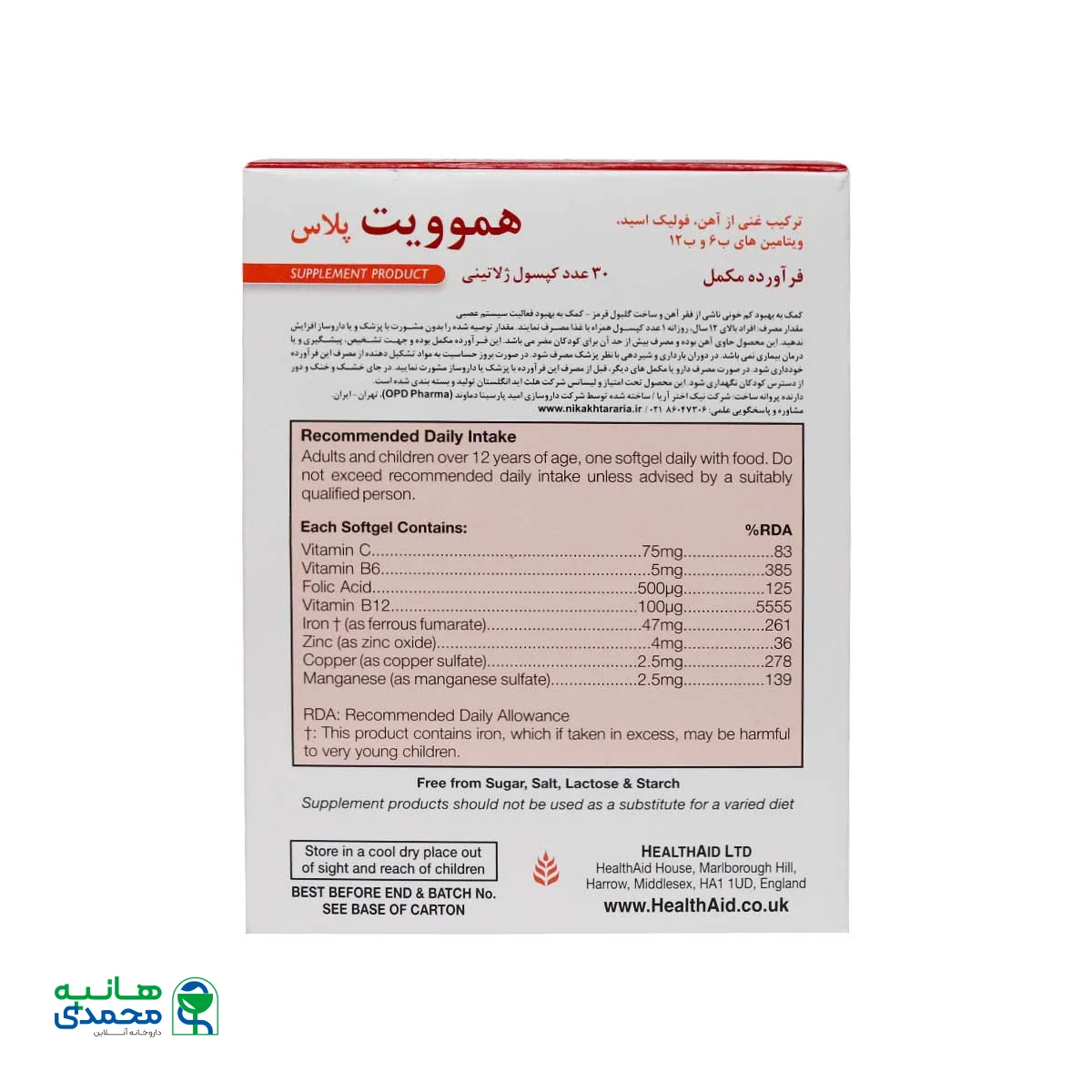 کپسول هموویت پلاس هلث اید ۳۰ عددیHealth Aid Haemovit Plus 30 Caps