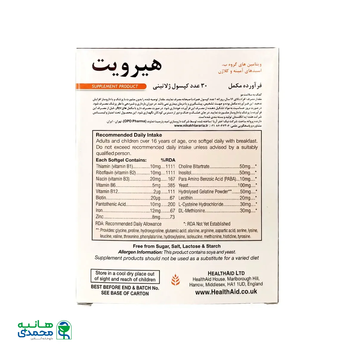 مشخصات کلیHealth Aid Hairvit 30 Capsules