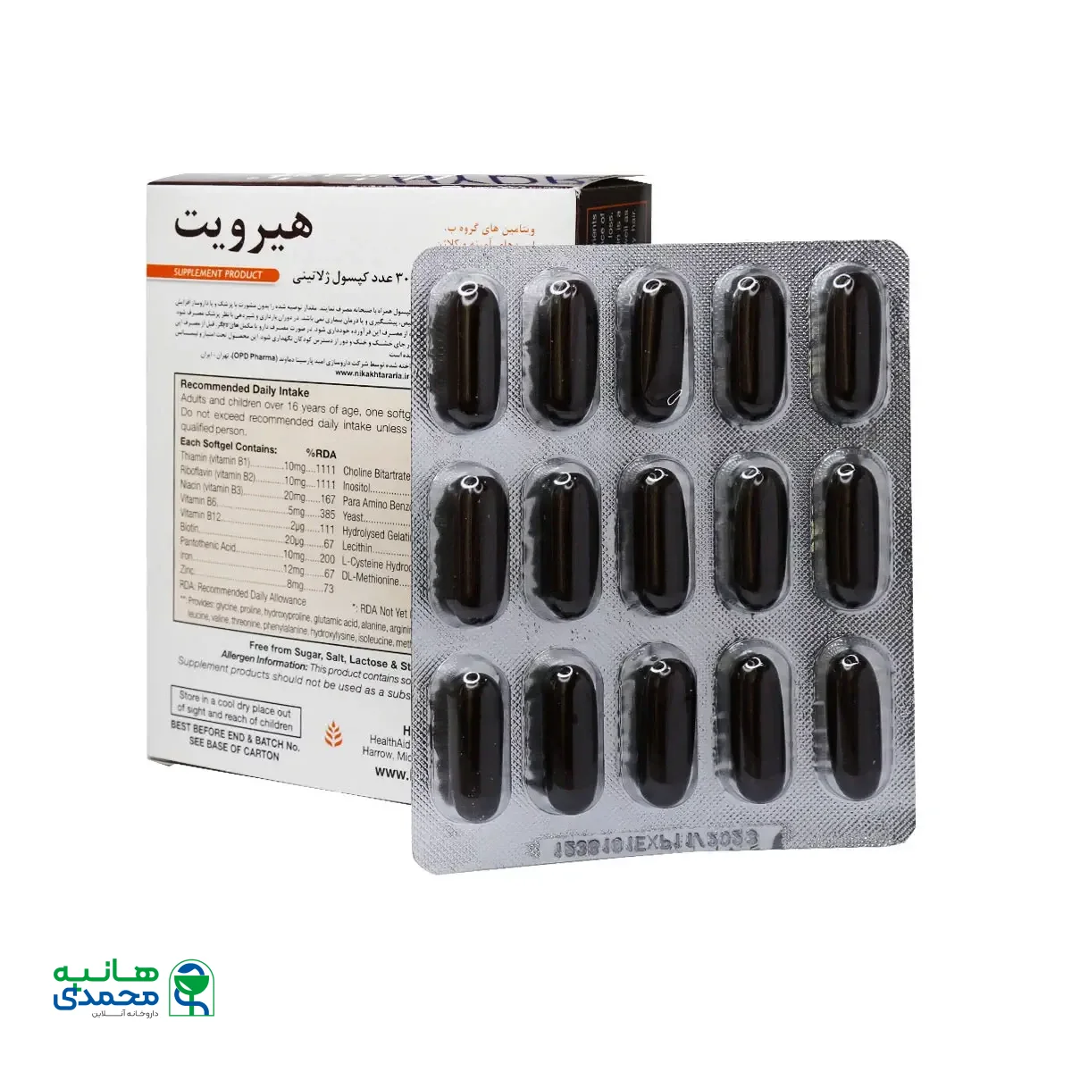 قرص هیرویت مواد مغذی و حیاتی را برای داشتن موهایی قوی، ضخیم و براق فراهم می‌کند و مانع از ریزش موهایتان خواهد شد، چرا که این مکمل منحصر به فرد سرشار از ویتامین‌های B ، املاح معدنی از جمله زینک، آهن و اسیدهای آمینه ضروری است.