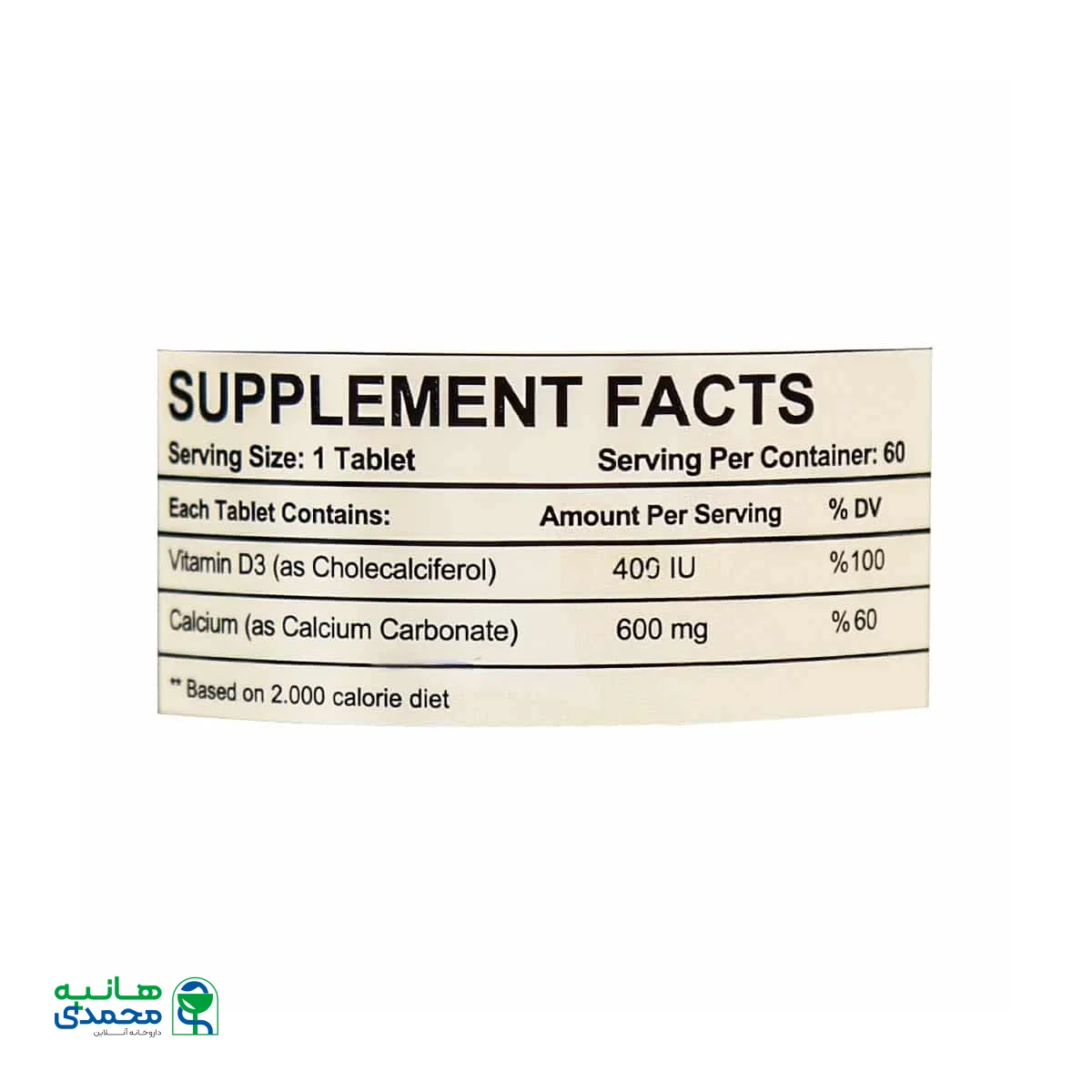 - حاوی کلسیم 600 میلی گرم و ویتامین د3 400 واحد