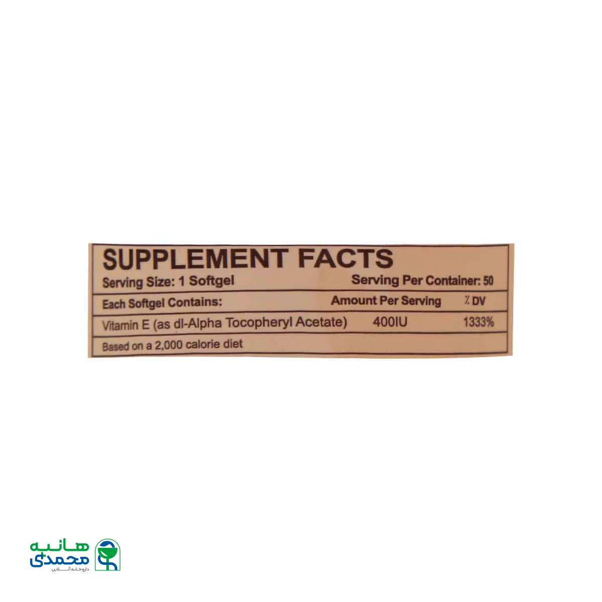 جدول ترکیبات در هر سافت ژل ویتامین E 400 واحد هلث اند مور