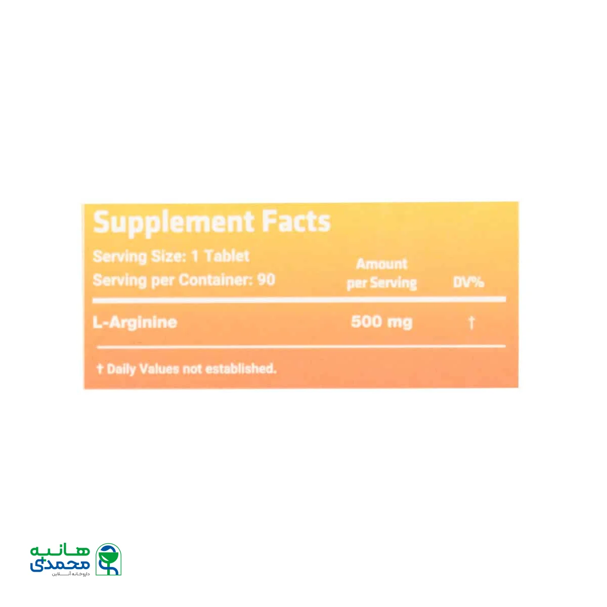 جدول ترکیبات قرص ال آرژنین 500 میلی گرم هلثی وی