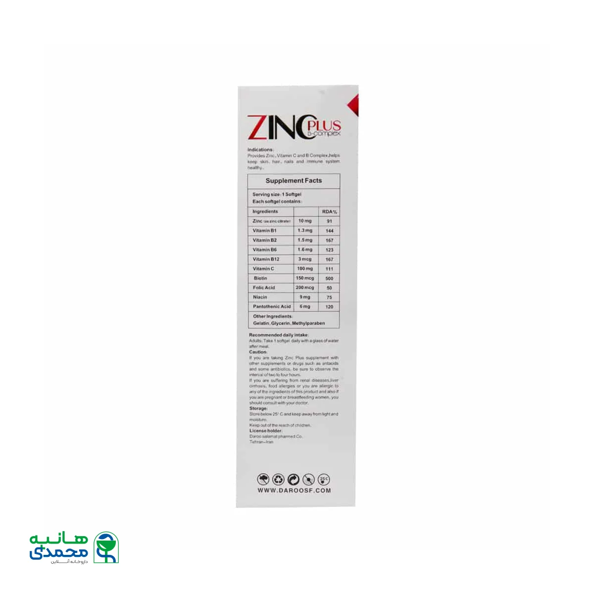 سافت ژل زینک پلاس ب کمپلکس های هلث با داشتن 10 میلی گرم زینک یک فرآورده ایمن و مفید است که علاوه بر اینکه به جبران کمبودی روی، ویتامین C و ویتامین‌های گروه ب کمک می‌کند، می‌تواند سیستم ایمنی شما را ارتقاء بخشیده و در رفع خشکی پوست، ریزش مو و شکننده شدن ناخن‌ها موثر است. ویتامین ث موجود در این محصول یک آنتی اکسیدان قوی است که رادیکال‌های آزاد را از بین می‌برد و به کلاژن سازی کمک می‌کند. استفاده از قرص زینک پلاس مانع از بروز چین و چروک می‌شود و قوام پوست را بالا می‌برد.