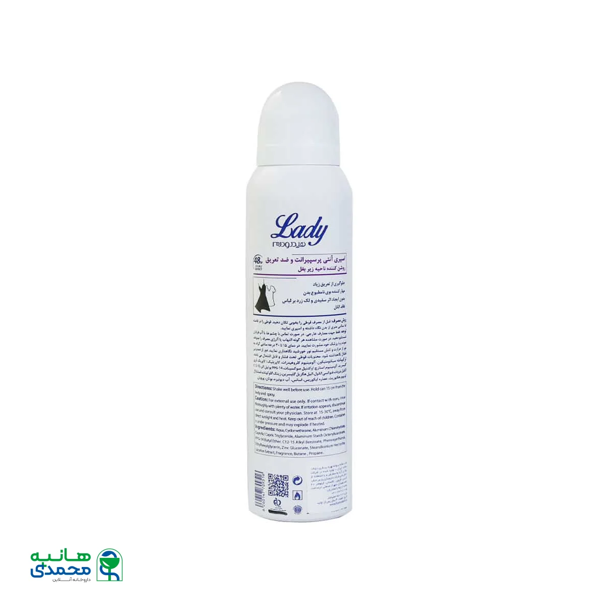 خرید اسپری ضد تعریق برای هر فرد ضروری است. این اسپری با رایحه مطبوع و ماندگاری 48 ساعته از عرق کردن و ایجاد بوی نامطبوع بدن جلوگیری می‌کند. این اسپری، خاصیت روشن کنندگی داشته و در نتیجه تیرگی‌های پوست زیر بغل را درمان می‌نماید. این محصول بدون ایجاد لک بر روی لباس، از تعریق بیش از حد بدن جلوگیری می‌کند. این محصول فاقد الکل است و هیچ حساسیتی روی پوست ایجاد نمی‌کند.