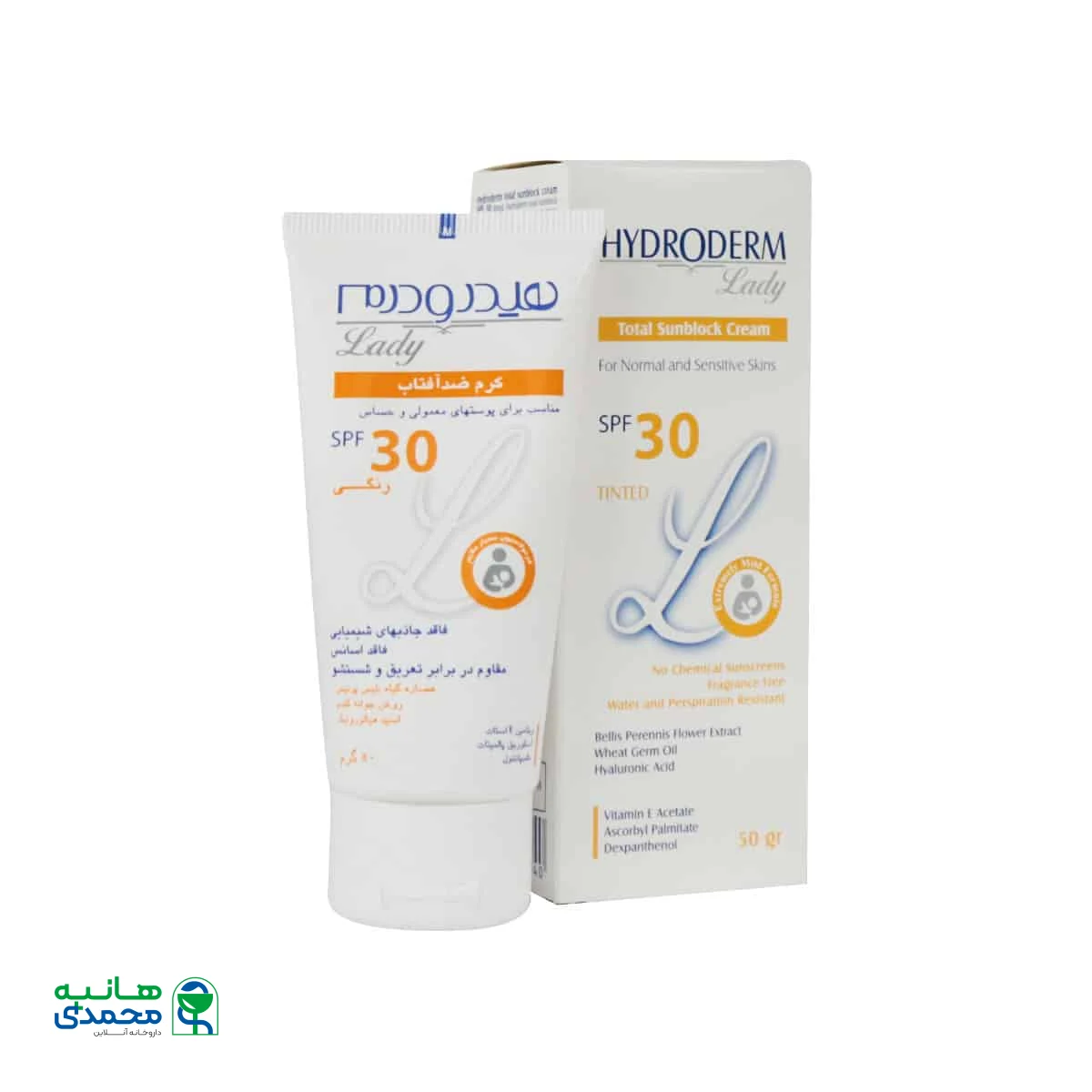 کرم ضد آفتاب SPF30 رنگی هیدرودرم عاری از جاذب های شیمیایی است. در فرمولاسیون آن فقط از بازتاب دهنده های معدنی نور آفتاب استفاده شده است. این بازتابدهندهها در درجه خلوص بالا و دانهبندی بسیار ریز هستند. استفاده از جاذب های شیمیایی در ترکیب ضد آفتاب موجب بروز آلرژی در بعضی افراد با پوست های حساس میشود. ضمن آنکه مصرف فرآورده های حاوی جاذب های شیمیایی جهت خانم های باردار و کودکان نیز توصیه نمی شود. فرمولاسیون ضد آفتاب های هیدرودرم به نحوی است که فیلم محافظتی ایجاد شده توسط آن در اثر تعریق یا شستشو با آب معمولی و یا هنگام انجام فعالیت های ورزشی از سطح پوست زدوده نمی شود. خرید کرم ضد آفتاب به شما در داشتن پوستی زیبا و سلامت کمک میکند.