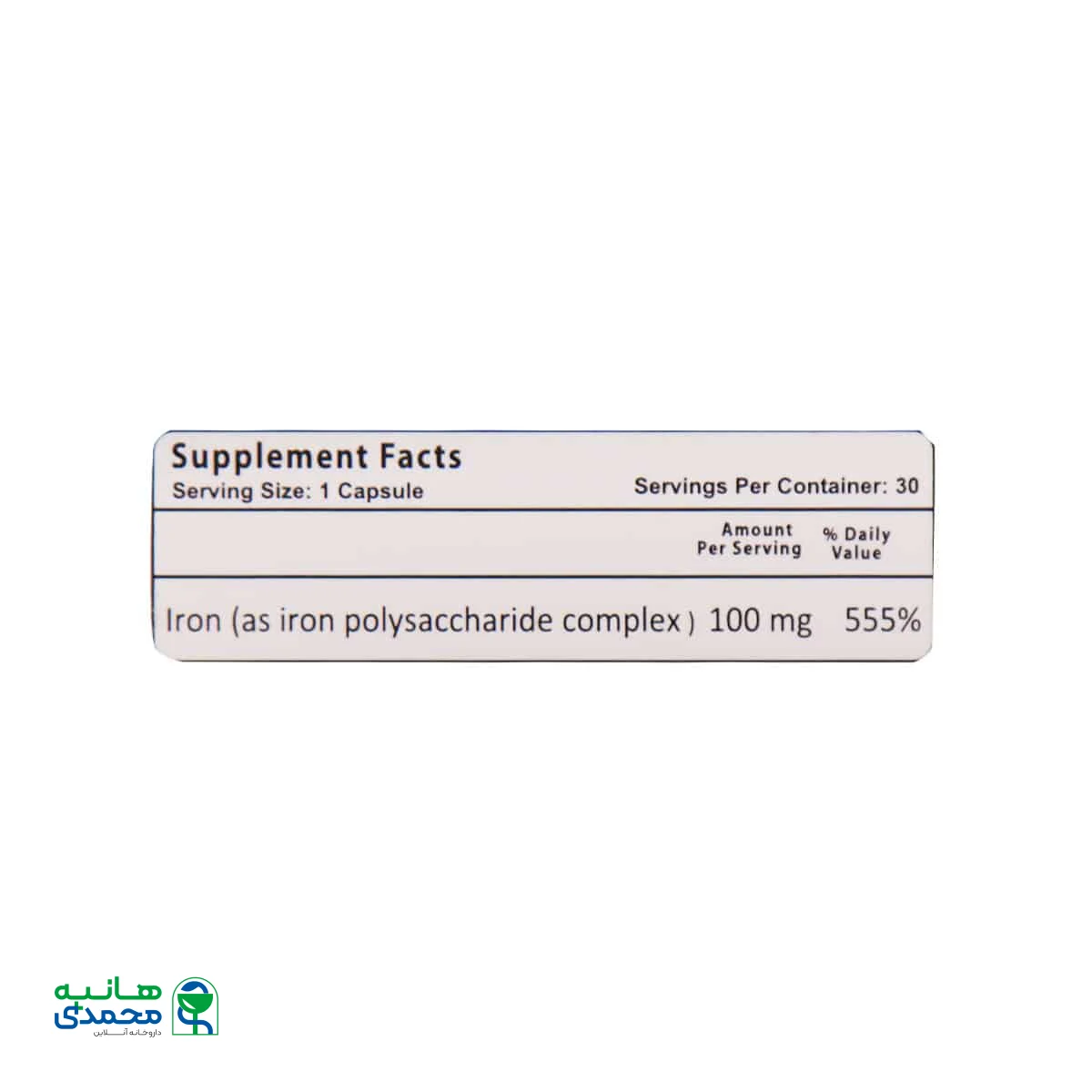 | آهن (کمپلکس اهن- پلی ساکارید) | 100mg | 555% |