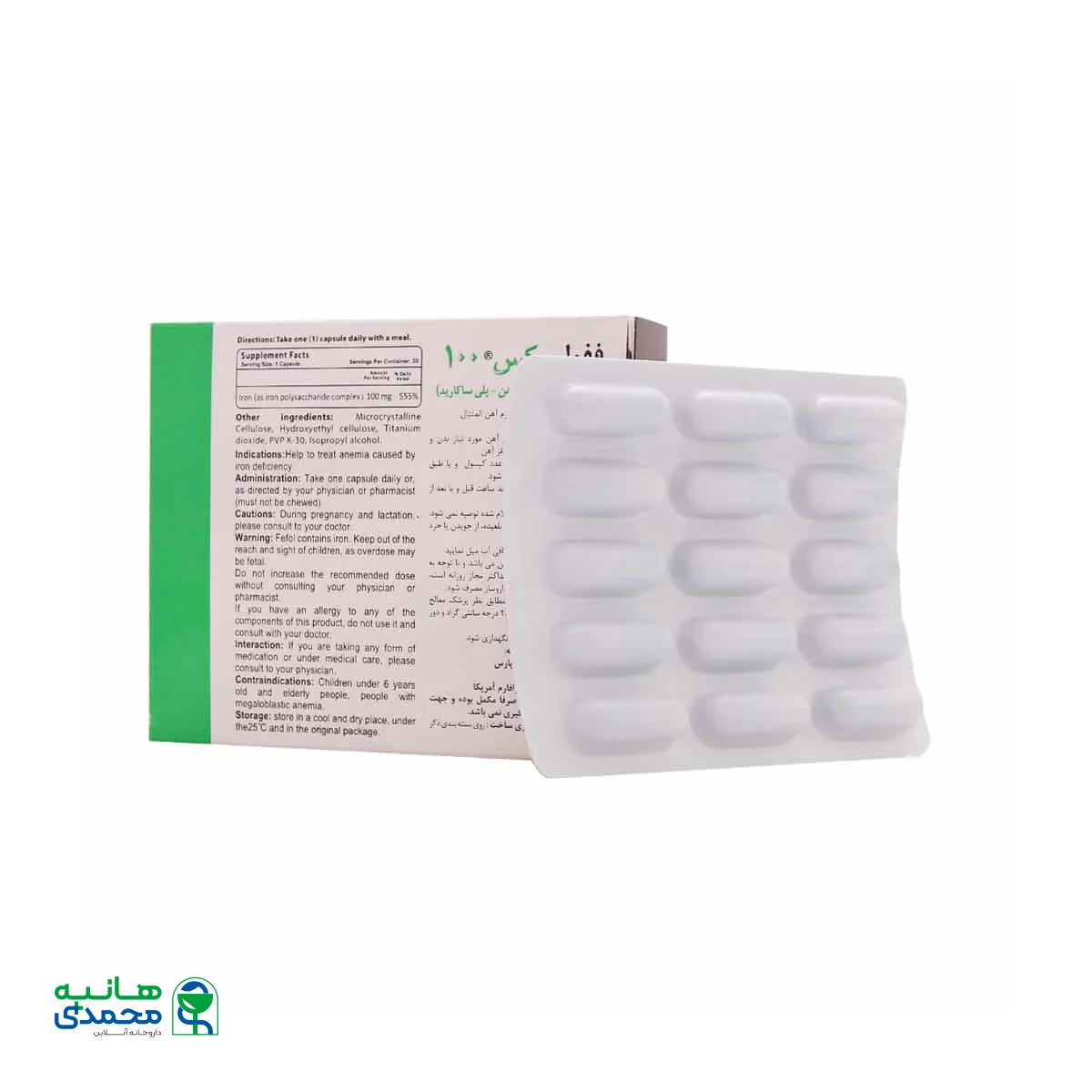 کپسول ففول مکس 100 اینترافارم برای رفع کمبود آهن و کم خونی فرموله شده است. کپسول Fefol حاوی دوز بسیار بالا آهن ( 100 میلی گرم کمپلکس آهن المنتال پلی ساکارید در هر کپسول) است که به صورت خاص برای مقابله با کمبود آهن مورد مصرف قرار میگیرد. استفاده از قرص آهن به سرعت ذخایر آهن را تقویت نموده و کم خونی ناشی از فقر آهن را برطرف مینماید. البته در نظر داشته باشید با توجه به اینکه مقدار آهن موجود در قرص کم خونی حدودا 33 درصد بیشتر از حد مجاز نیاز روزانه آهن است، تنها در موارد کمبود آهن و به تایید پزشک باید مصرف شود.