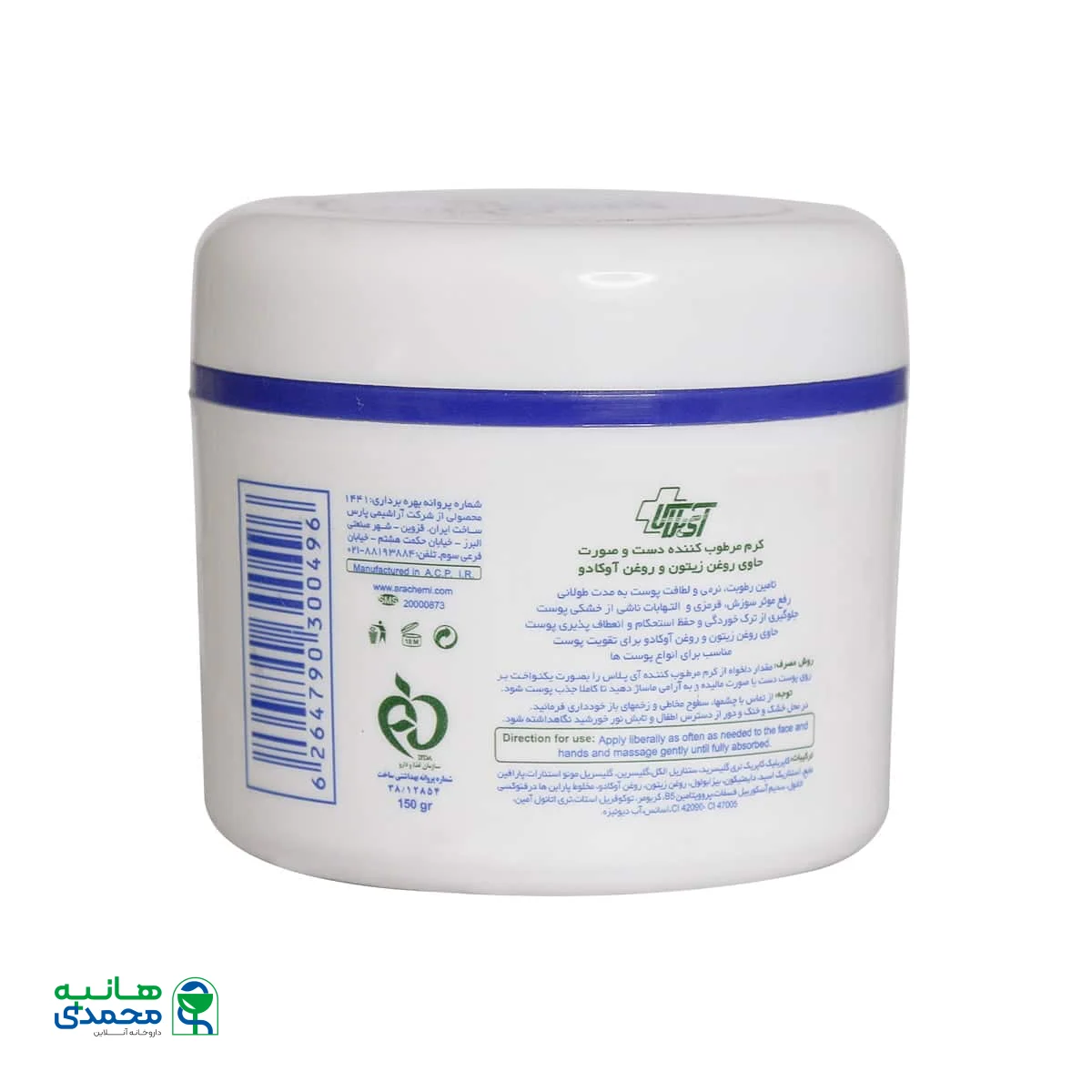 کرم مرطوب کننده روغن زیتون و آووکادو آی پلاس 150 گرمIplus Olive and Avocado Oil Moisturizing Cream 150 g