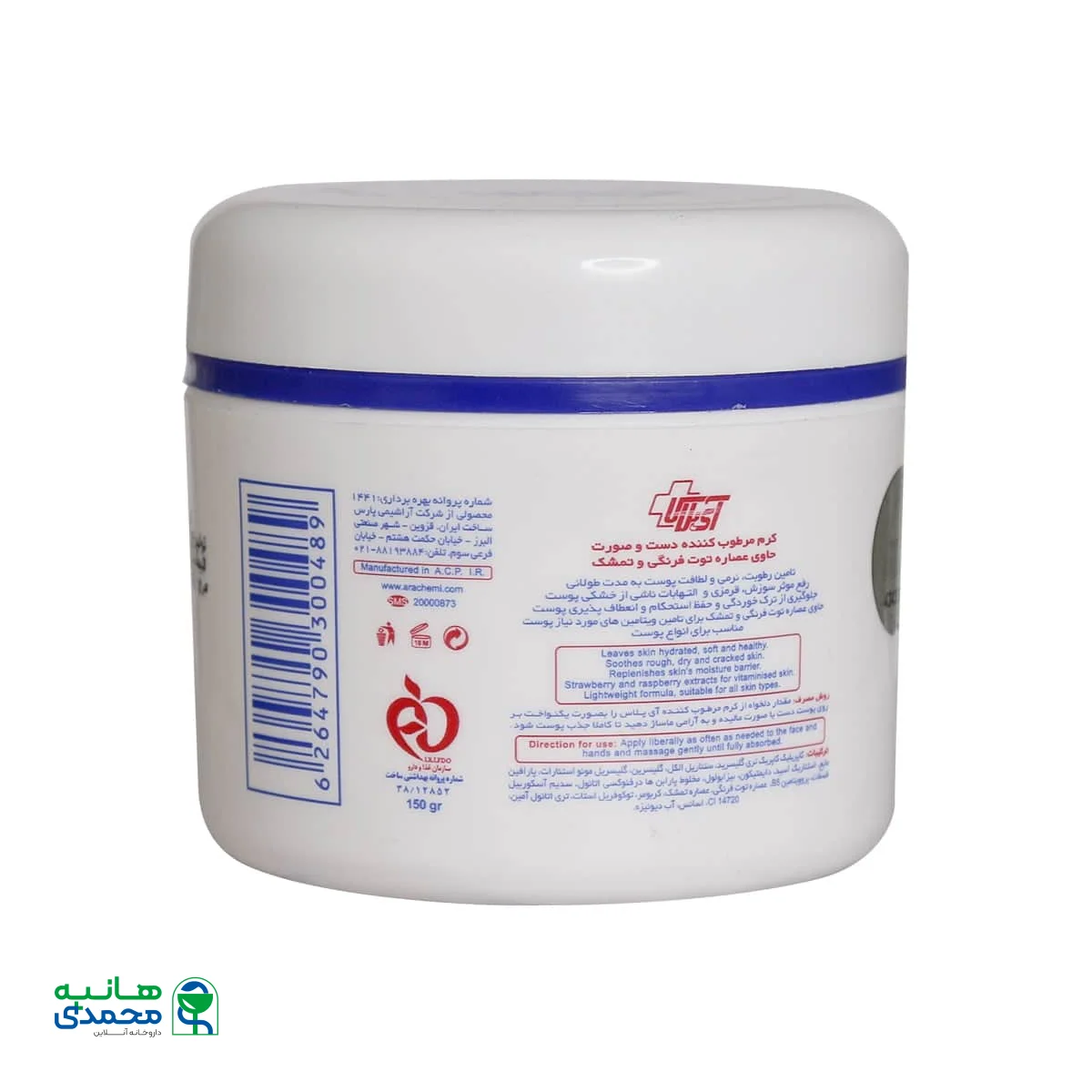 کرم مرطوب کننده توت فرنگی و تمشک آی پلاس نه تنها به رطوبترسانی به پوست شما کمک میکند بلکه در حفظ انعطاف پذیری و استحکام پوست نیز موثر است. این کرم حاوی عصاره توت فرنگی و تمشک بوده و ویتامینهای مورد نیاز برای تقویت پوست را تامین میکند. شما هر نوع پوستی که داشته باشید، میتوانید از این محصول به عنوان یک مرطوبکننده ایدهآل بهره بگیرید. کرم مرطوب کننده دست و صورت از ترک خوردگی پوست جلوگیری میکند و سبب میشود تا سوزش، التهاب و قرمزی ناشی از خشکی پوست تسکین یابد. این کرم هم مخصوص دست و هم مخصوص صورت است و در حقیقت شما با خرید آن، با یک تیر دو نشان زدهاید. برای خرید و مشاهده قیمت کرم مرطوب کننده دست به سایت داروخانه آنلاین دکتر هانیه محمدی مراجعه نمایید.