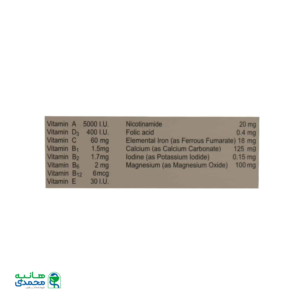 جدول ترکیبات مولتی ویتامین مینرال ایران دارو