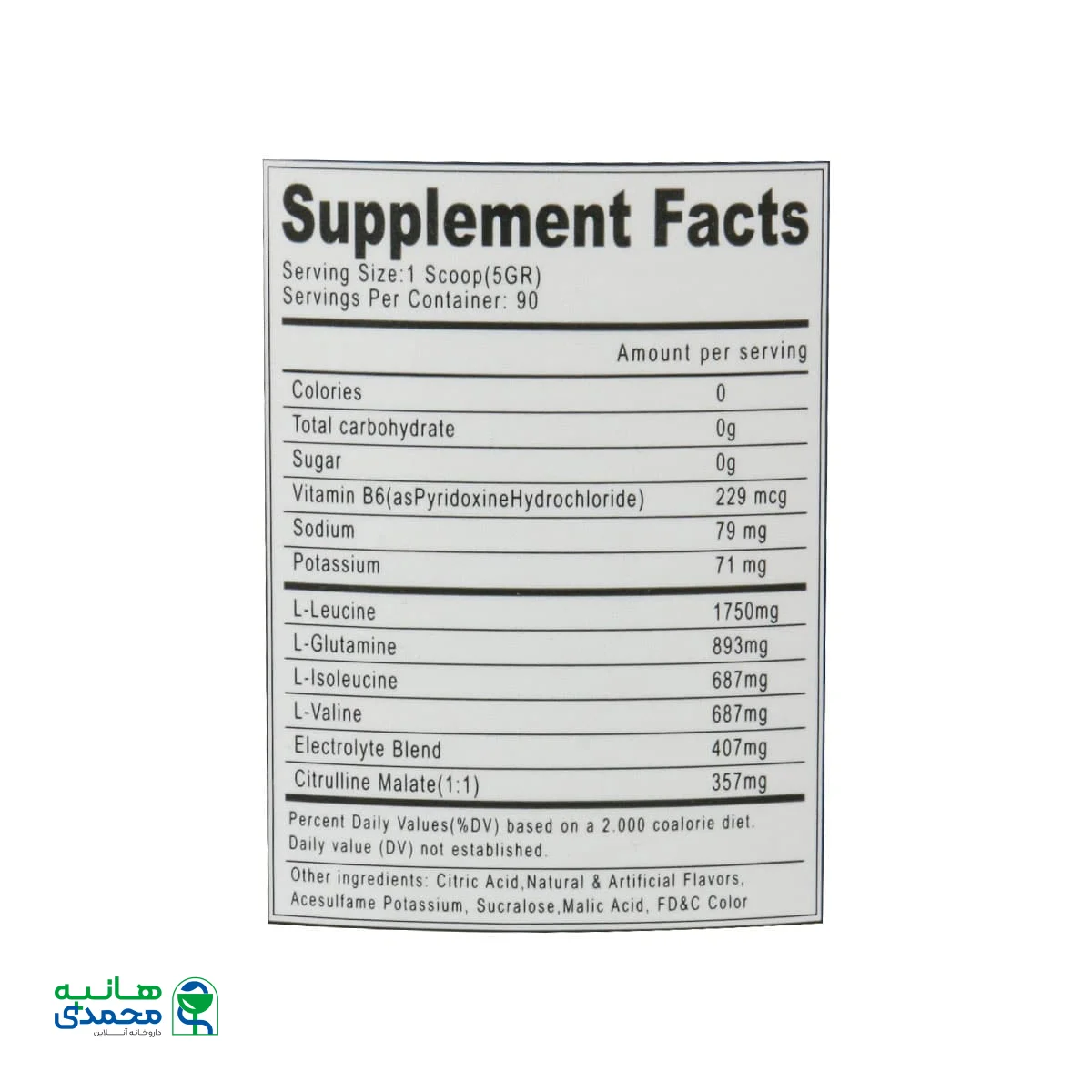 • حاوی اسید آمینه‌های ضروری با نسبت 2:1:1