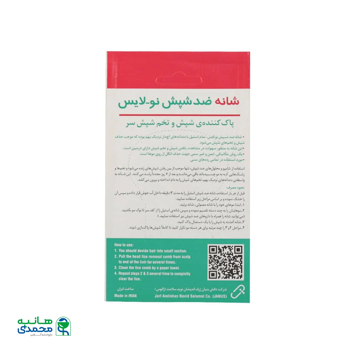 شانه ضد شپش نولایس ژانوس از جنس استیل، دندانه‌های آج دار و نزدیک به هم به راحتی قادر است شپش و تخم شپش را از روی پوست سر، گردن و گوش حذف کند. این شانه به منظور سهولت در مشاهده، یافتن شپش و تخم شپش دارای ذره بین است.