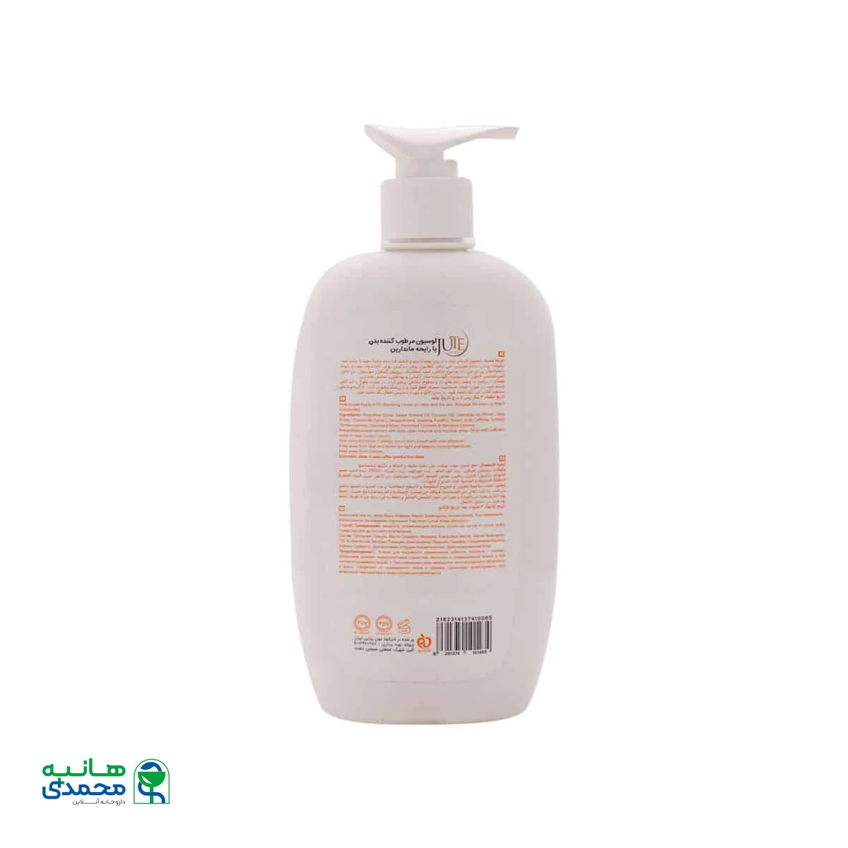 این محصول رطوبت را به لایه‌های زیرین پوست می‌رساند و یک لایه بردار عالی پوست است. در ترکیبات این محصول شی باتر، آلوئه ورا، دکسپانتنول، روغن بادام شیرین و رایحه ماندارین دیده می‌شود و با بافت سبک و جذب سریع یک انتخاب مناسب برای افراد با پوست خشک و حساس است. برای خرید لوسیون بدن می‌توانید به سایت داروخانه آنلاین دکتر هانیه محمدی مراجعه نمایید.