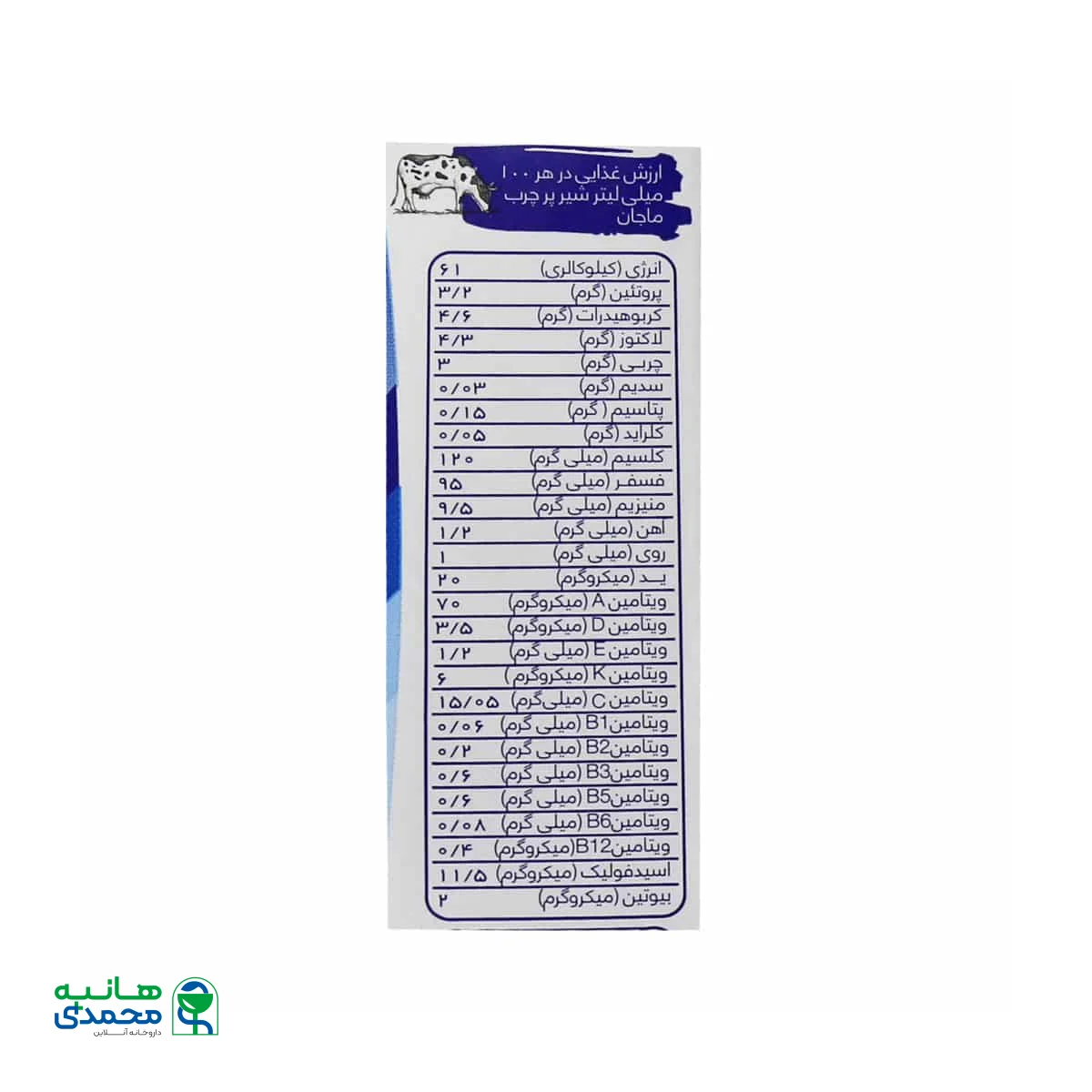 شیر پر چرب ماجان کاله با داشتن ویتامین و مواد معدنی مورد نیاز یک میان وعده مناسب برای کودکان بالای یک سال است. این محصول فاقد مواد نگهدارنده است.
