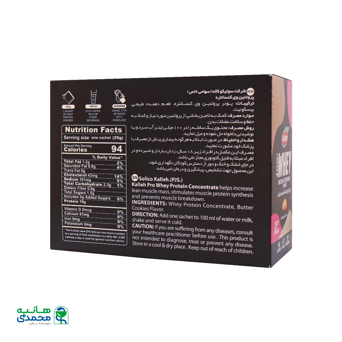 خرید ساشه پروتئین وی کاله پرو از داروخانه آنلاین دکتر هانیه محمدی یک انتخاب هوشمندانه برای افرادی است که به دنبال افزایش عضله سازی و بهبود عملکرد ورزشی خود هستند. وبسایت دکتر هانیه محمدی این محصول را با قیمت مناسب و تخفیف‌های ویژه عرضه می‌کند که به شما این امکان را می‌دهد تا به راحتی به پروتئین مورد نیاز خود دست یابید. یکی از مزیت‌های خرید از وبسایت دکتر هانیه محمدی این است که می‌توانید از اصالت محصول و کیفیت آن مطمئن باشید. کارشناسان تغذیه و مربی بدنسازی در مجموعه حضور دارند تا به سوالات شما که از طریق تلفنی، تیکت و بخش نظرات پرسیده می‌شود، پاسخگو باشند و شما را در امر خرید آگاهانه راهنمایی کنند.