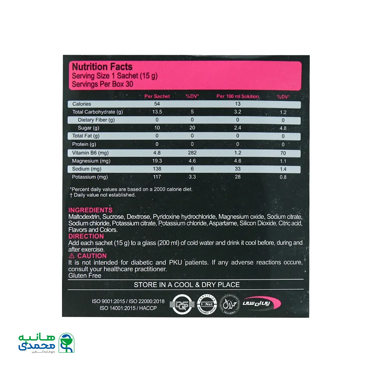 محتوای هر ساشه (15 گرم) را در یک لیوان (200 میلی لیتر) آب حل نموده و محلول آماده شده را قبل، حین و پس از تمرین یا مسابقه خنک بنوشید.