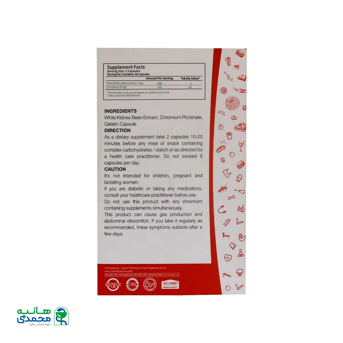• مهار کننده کربوهیدرات: کپسول کربوفایت کارن یک مکمل کاهش دهنده جذب کربوهیدارت است. مهارکننده‌های جذب کربوهیدرات (عصاره لوبیا سفید) که به عنوان مهارکننده‌های جذب نشاسته هم شناخته می‌شوند، آنزیم‌هایی را که برای گوارش کربوهیدرات‌های خاصی لازمند، مهار می‌نمایند.