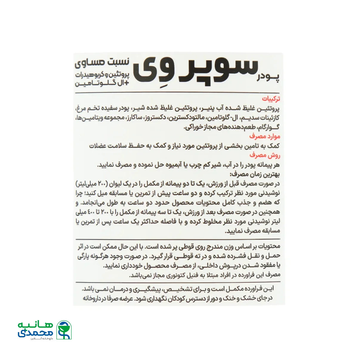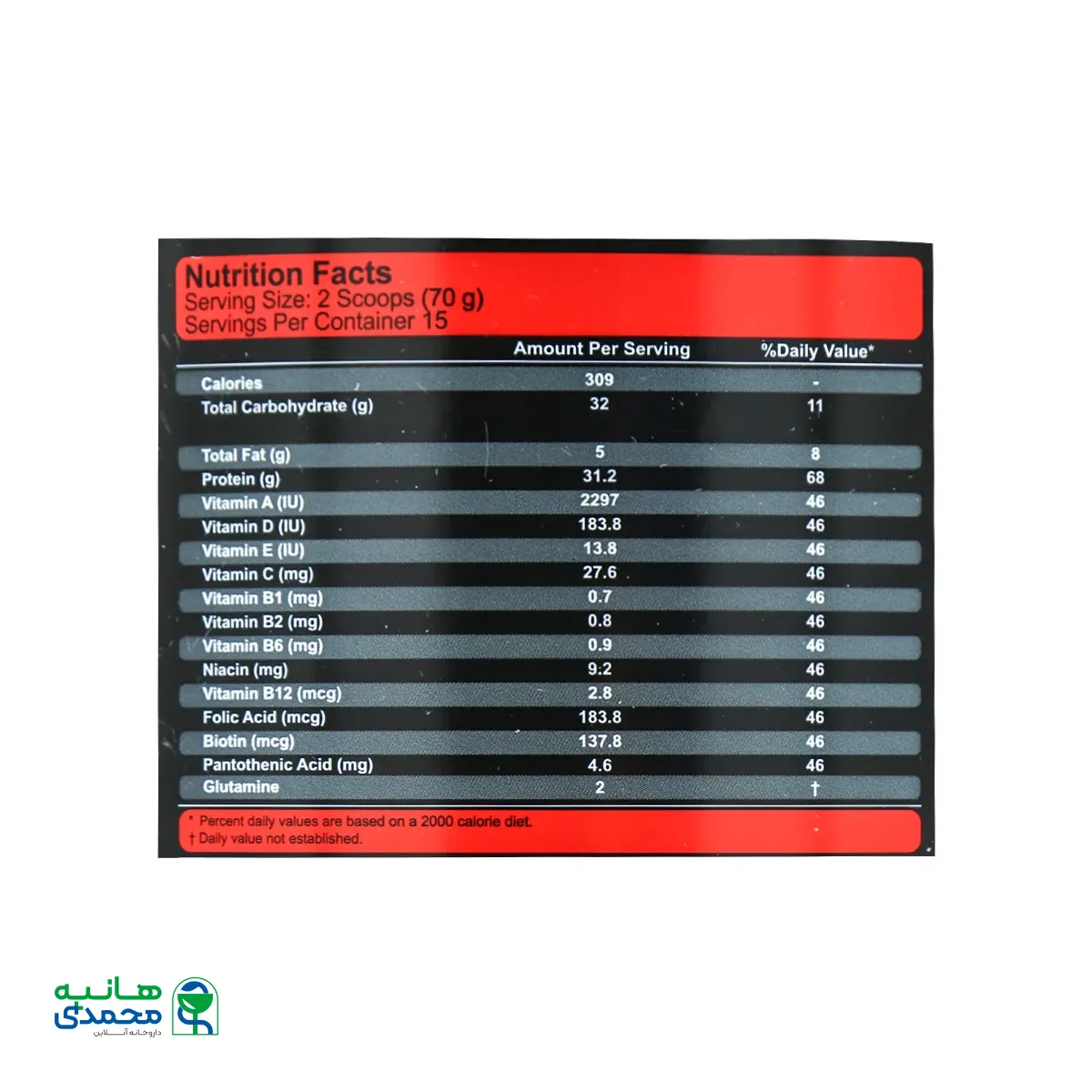 ترکیبات مقدار در هر 2 اسکوپ درصد نیاز مصرف روزانه