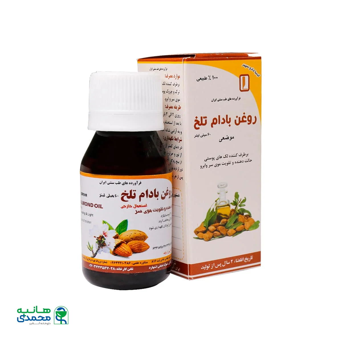 50 درصد این روغن از سه ماده اساسی به نام بنزآلدهید، گلیکوسید آمیگدالین و هیدروژن سیانید تشکیل شده است. 50 درصد باقی مانده آن نیز حاوی چربی تک غیر اشباع و ترکیبات مشابه روغن بادام شیرین است. اما بادام تلخ بر خلاف بادام شیرین (به علت دارا بودن آمیگدالین) به صورت خوراکی مصرف نمی‌شود. زیرا مضر بوده و حتی می‌تواند سبب مرگ شود. از روغن بادام تلخ اغلب جهت مصارف دارویی مانند درمان آرتروز یا موارد آرایشی به ویژه برای مو استفاده می‌شود. این روغن می‌تواند ریزش مو ناشی از استرس، سو تغذیه، برهم خوردن تعادل هورمونی و افزایش سن را برطرف سازد. موادی مانند کلسیم در بادام تلخ می‌تواند حتی در سنین سالمندی نیز موهایی پرپشت و لطیف را به شما هدیه دهد. این روغن در بسیاری از محصولات برای ابرو، مژه، ریش و سیبیل هم می‌تواند نتایج مثبتی داشته باشد. جهت مشاهده قیمت و خرید مکمل گیاهی به بخش مربوطه در داروخانه دکتر هانیه محمدی مراجعه کنید.