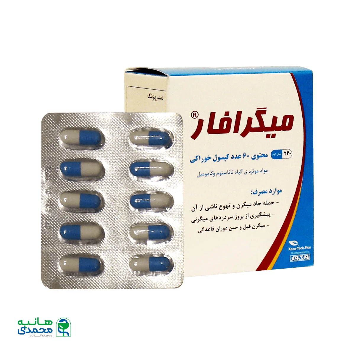 کپسول میگرافار نوتک فار یک مکمل گیاهی برای درمان انواع سردردها است که حاوی ترکیبات موثره گیاه تاناستوم یا بابونه گاو چشم (از تیره کاسنی) و کامومیل (بابونه آلمانی) ساخته شده است. این داروی گیاهی علاوه بر تسکین سردردهای میگرنی باعث پیشگیری و کاهش تعداد و شدت این سردرد ها خواهد شد. این مکمل با اثرات آرام‌بخشی و ضد اضطرابی خود به افرادای که دچار میگرن‌های حاد می‌شود کمک می‌کند و همچنین حالت تهوع و استفراغ ناشی از این سردردها را تسکین می‌دهد. افرادی که از سردردهای میگرنی شکایت می‌کنند می‌توانند از مکمل گیاهی میگرافار هم به منظور پیشگری و هم جهت متوقف کردن حمله میگرن استفاده کنند. همچنین این مکمل سردردهای قبل و حین دوران قاعدگی را نیز تسکین می‌هد.