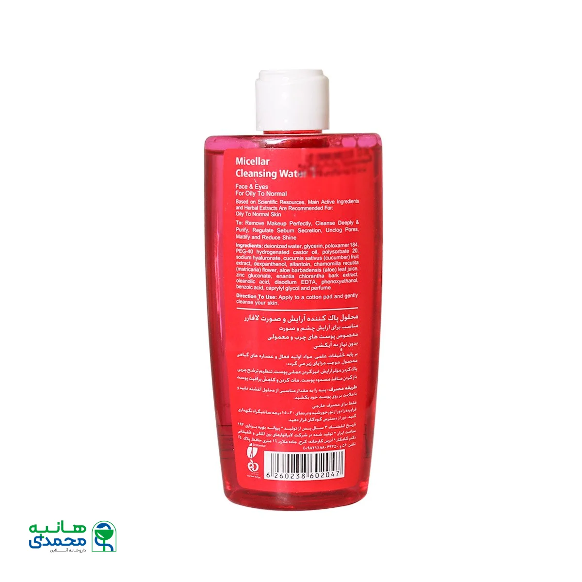 پاک کننده آرایش پوست معمولی و چرب لافارر سرشار از عصاره‌های گیاهی بوده و آرایش چشم و صورت شما را به راحتی از روی پوست پاک می‌کند. افرادی که پوست معمولی یا چرب دارند، می‌توانند از این محصول که نیازی به آب‌کشی نیز ندارد، استفاده نمایند. این محلول علاوه بر اینکه یک پاک‌کننده آرایش است، پوست را  از هرگونه آلودگی نیز پاک می‌کند. محلول پاک کننده آرایش لافارر مخصوص پوست‌های چرب و معمولی به باز کردن منافذ باز پوست کمک نموده و به صورت عمقی به پاک کردن پوست صورت می‌پردازد. این محصول همچنین ترشح چربی را در پوست تنظیم می‌کند و باکتری‌ها و چربی مفید پوست را از بین نمی‌برد. عصاره خیار، بابونه و آلوئه ورا از ترکیبات گیاهی موثر در این محلول آرایش پاک‌کن هستند. جهت اطلاع از قیمت و خرید میسلار واتر می‌توانید به بخش مربوطه در سایت دکتر هانیه محمدی مراجعه کنید.