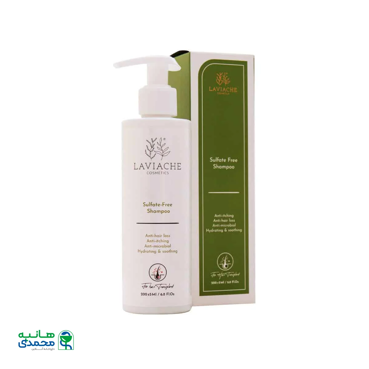 مقدار مناسبی از شامپو فری سولفات بعد از کاشت مو لاویاچه را روی کف دست قرار داده و ماساژ دهید. سپس پوست مرطوب سر را با کف حاصل آغشته نموده و پس از یک دقیقه آبکشی کنید.