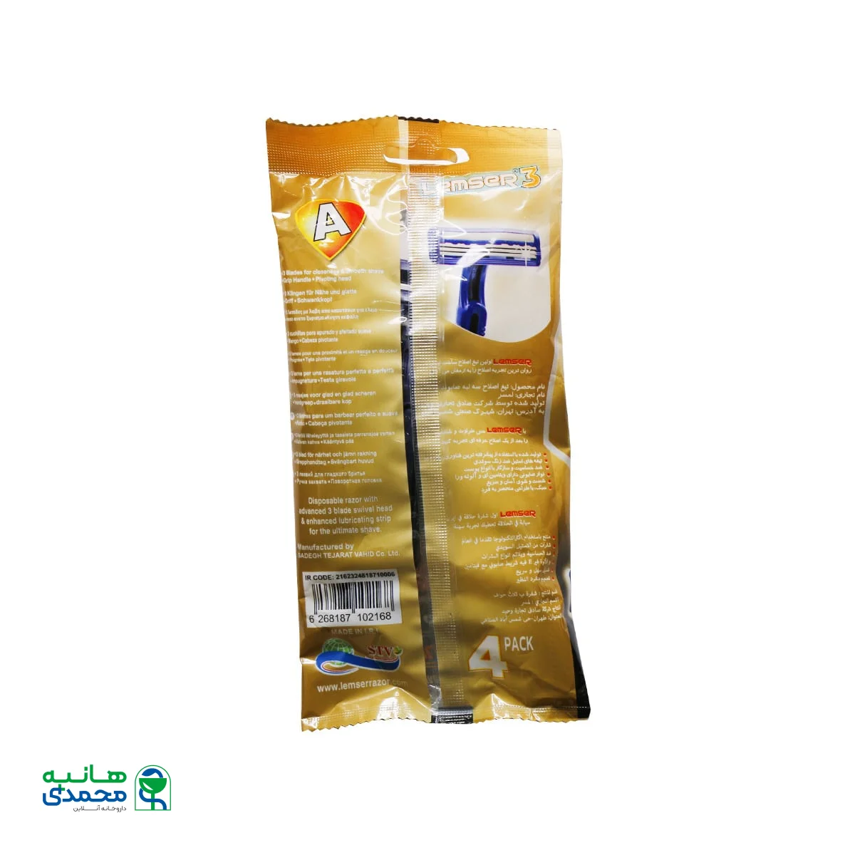 تیغ اصلاح سه لبه صابوندار لمسر 4 عددیLemser 3 Blade Disposable Razor Shave 4 Pcs