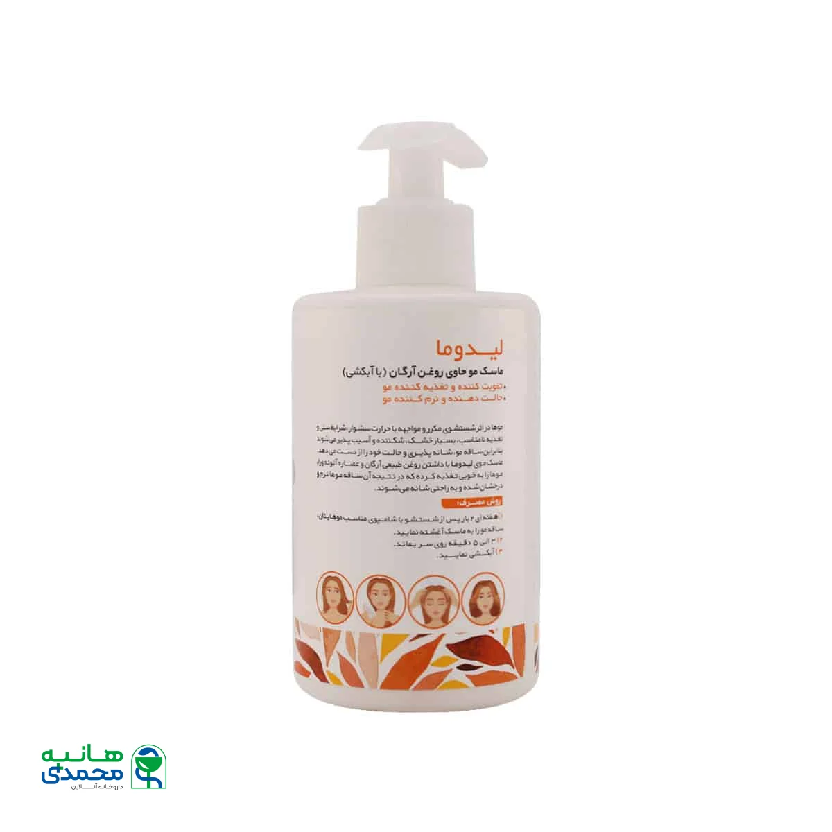 ماسک مو لیدوآرگان لیدوما مناسب موهای آسیب دیده و خشک بوده که به تقویت، درخشان و حالت دهی موها کمک موثری می‌کند. بعد از استفاده از این ماسک نیاز به آبکشی موها است.