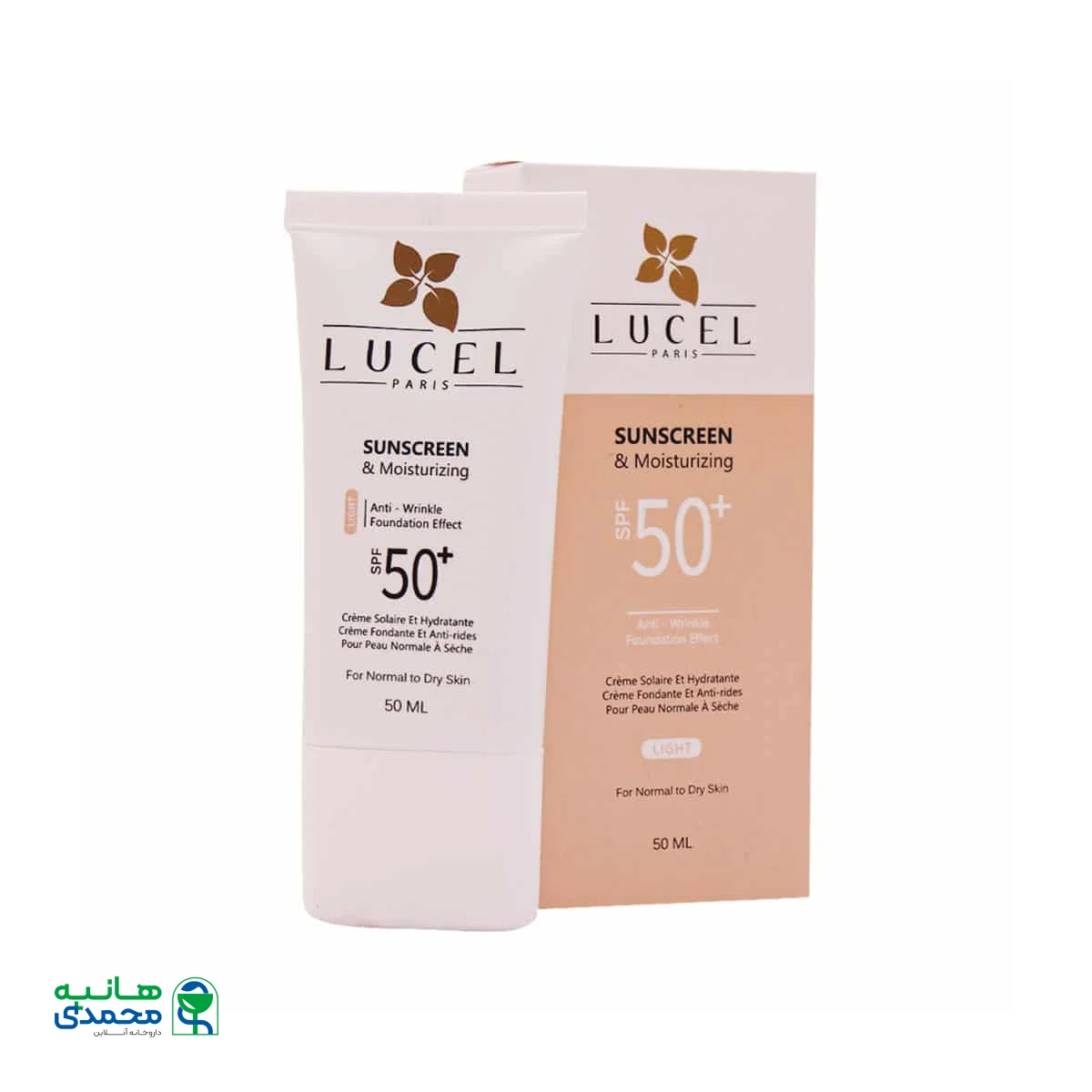 کرم ضد آفتاب و مرطوب کننده SPF50 پوست خشک و معمولی لوسل 50 میلی لیترLucel Sunscreen And Moisturizing SPF50 For Normal And Dry Skin 50 Ml