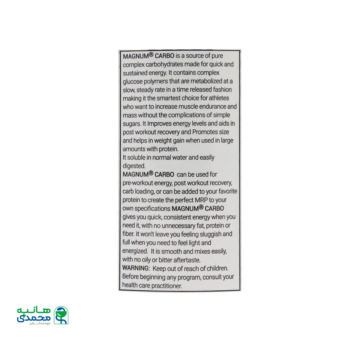 پودر کربو مگنوم منبعی از کربوهیدراتهای پیچیده خالص است که برای انرژی بخشی سریع و پایدار فرموله شده است. این مکمل شامل پلیمرهای گلوکز پیچیده است که با سرعت آهسته و پیوسته در یک زمان آزاد میشوند تا بدون هیچ عوارضی ناشی از قندهای ساده، استقامت عضلانی و جرم را افزایش دهد. به همین خاطر گفته شده است که مکمل کربوهیدرات یکی از هوشمندانهترین انتخابها برای ورزشکارانی است که میخواهند استقامت و توده عضلانی خود را بدون عوارض افزایش دهند.