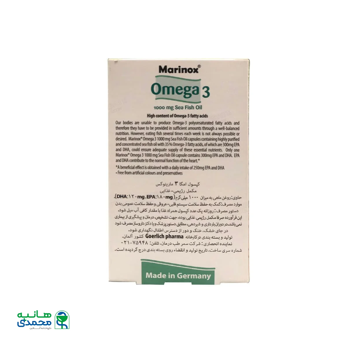 کپسول امگا 3 مارینوکس ضروری است زیرا که بدن ما قادر به تولید اسیدهای چرب امگا ۳ اشباع نشده نیست و به همین دلیل باید مقدار کافی آن از طریق یک تغذیه متعادل فراهم شود. با این حال، خوردن ماهی چندین بار در هفته همیشه ممکن و یا مطلوب نیست. کپسول  مارینوکس حاوی مقادیر بالای امگا ۳ و اسیدهای چرب غیر اشباع است.