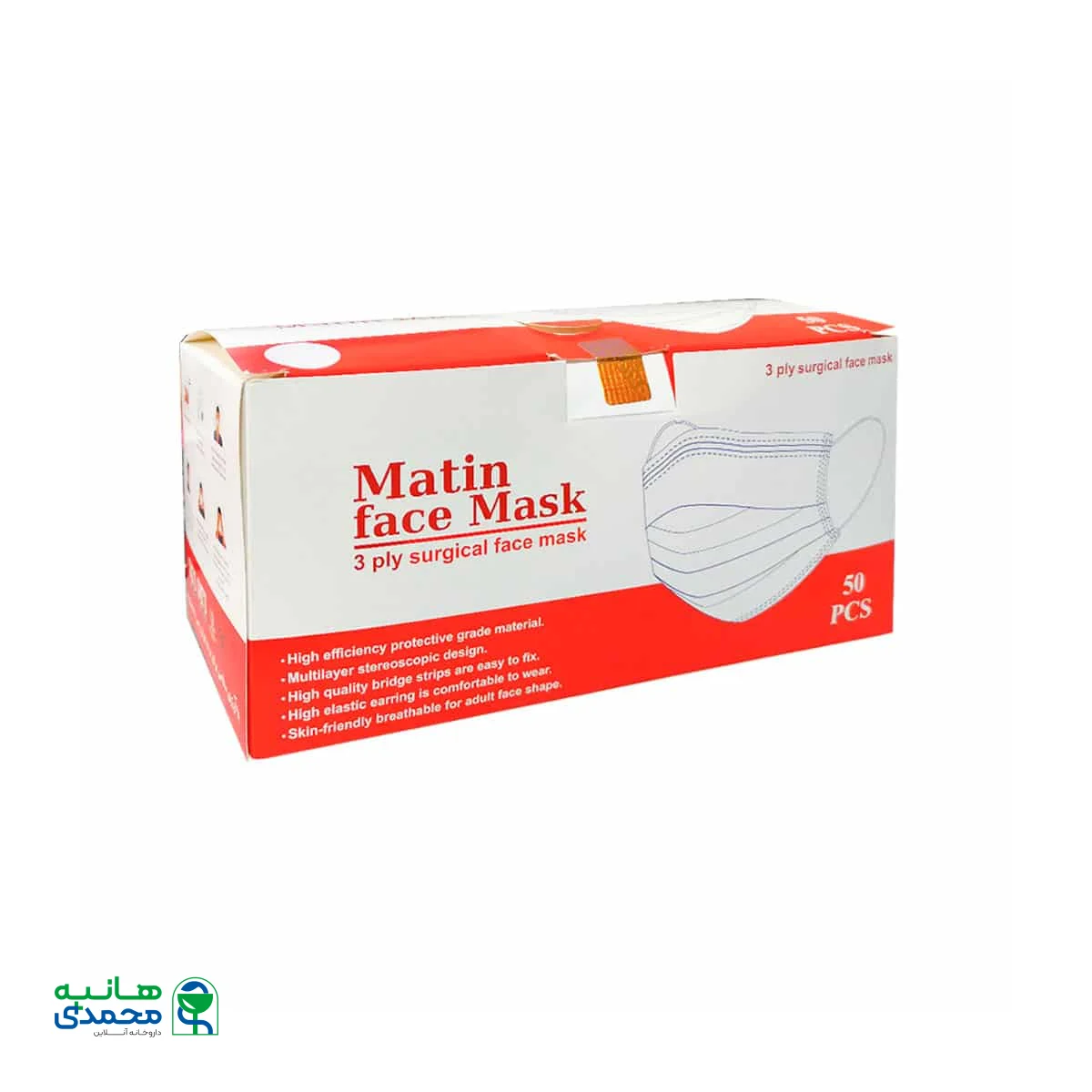 ماسک سه لایه پرستاری متین 50 عددMatin 3 Ply Surgical Face Mask 50 Pcs