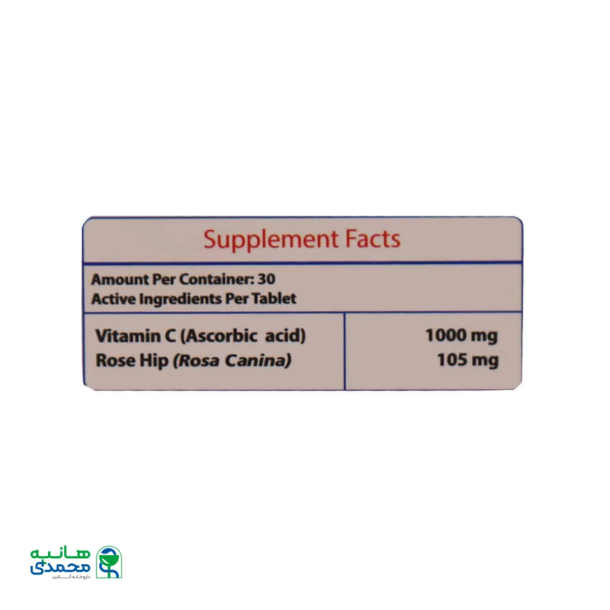 جدول ترکیبات قرص ویتامین سی 1000 میلی گرم پلاس رز هیپ ماتراسی