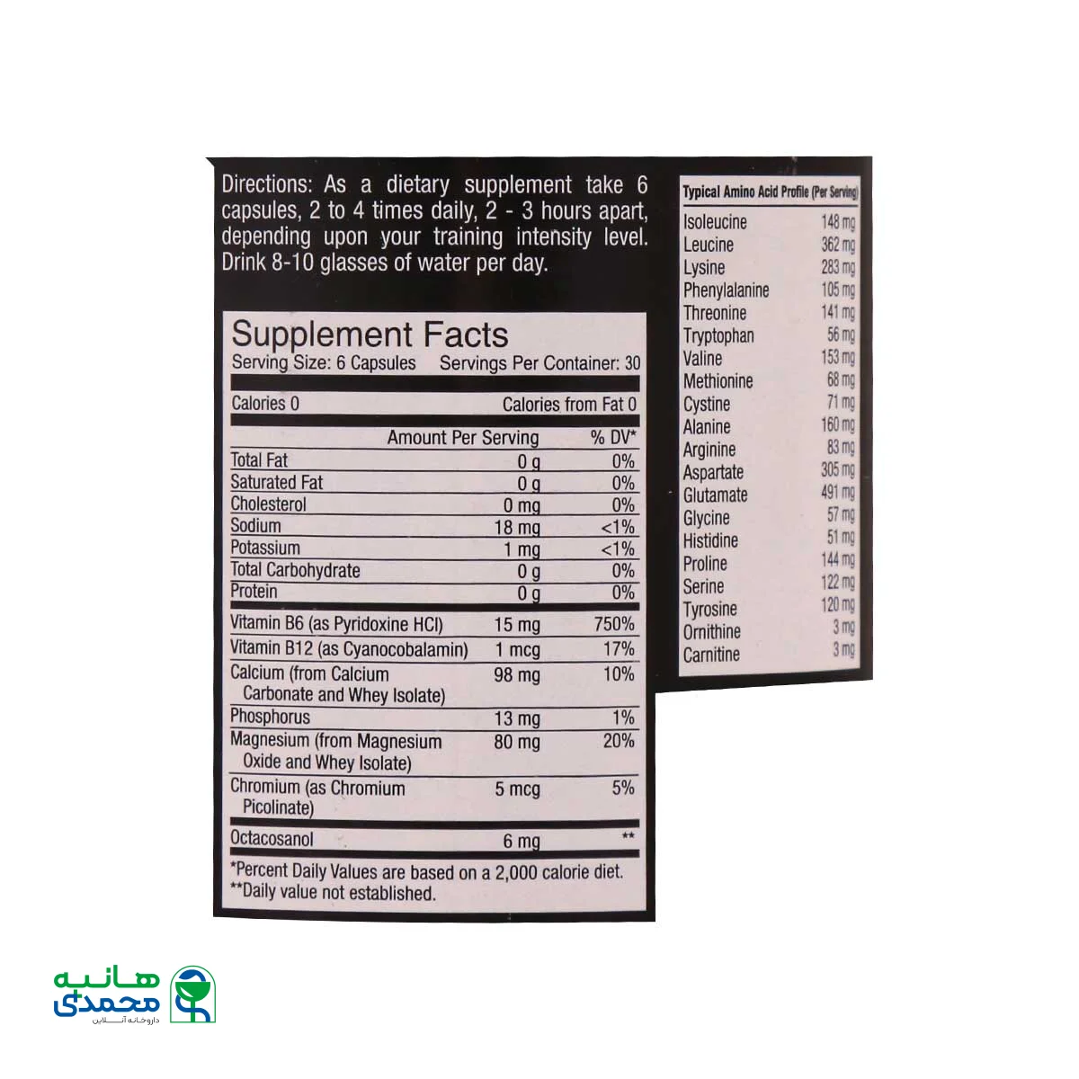 روزانه حداکثر 6 کپسول در 2 تا 4 نوبت و به فاصله 2 تا 3 ساعت بسته به شدت تمرینی مصرف کنید؛ روزهای مصرف 8 تا 10 لیوان آب میل کنید.