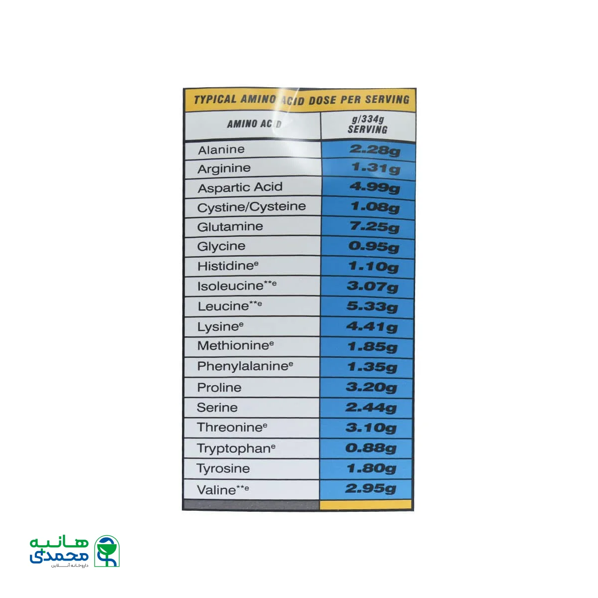 ترکیبات مقدار در 6 اسکوپ (334 گرم) درصد نیاز مصرف روزانه