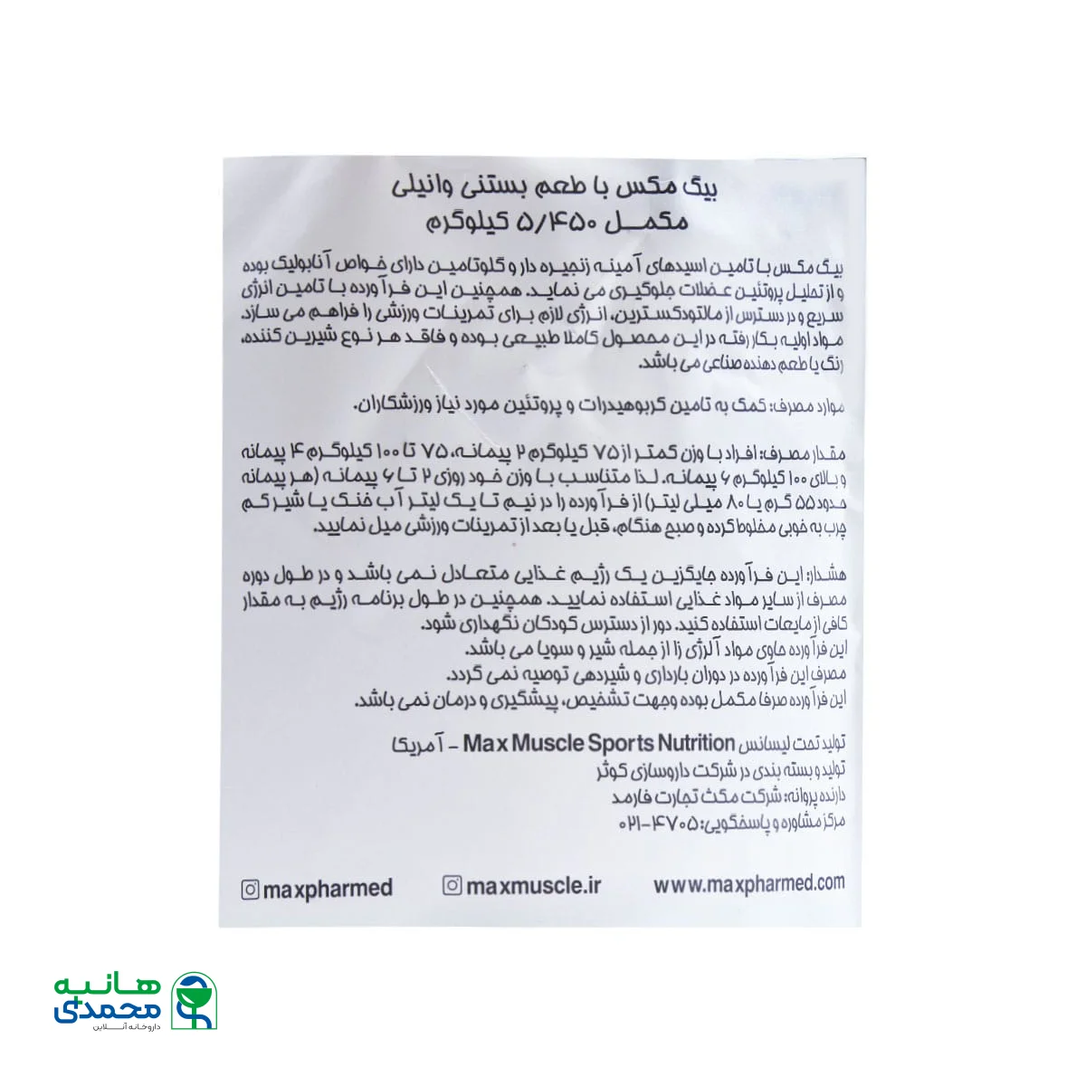 مشخصات کلیMax Muscle Big Max Powder 5450g