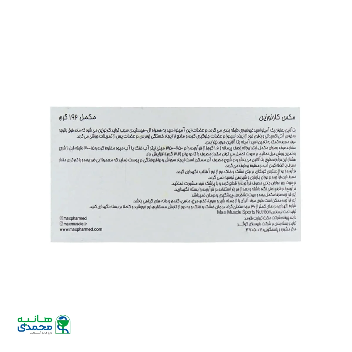پودر مکس کارنوزین مکس ماسل 192 گرم بتا آلانینMax Muscle Max Carnosyn Powder 192 g