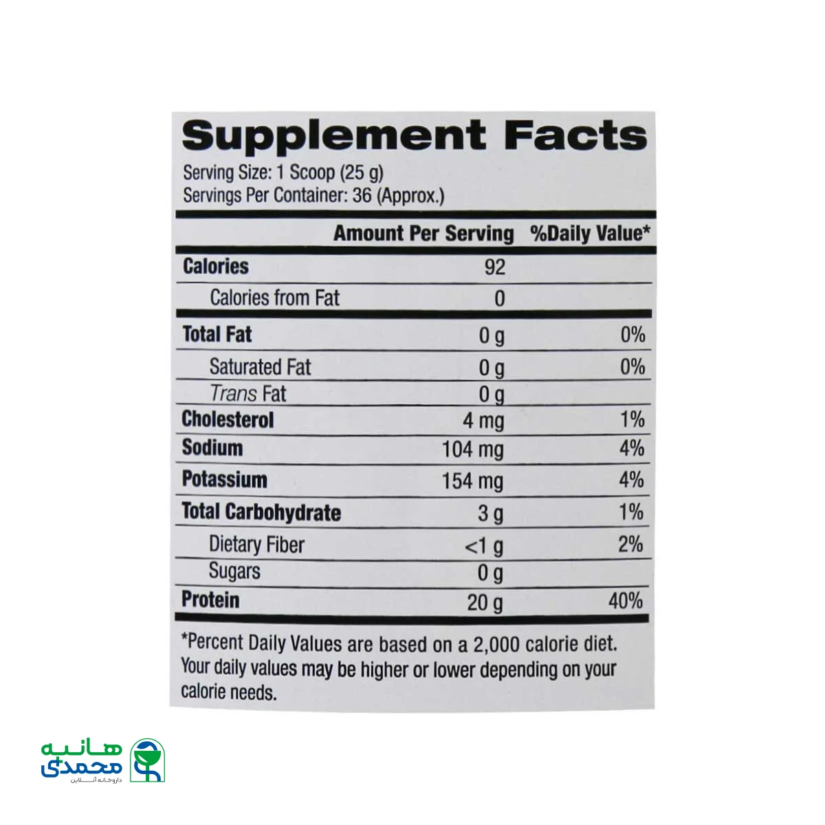 • ۲۱ گرم پروتئین خالص Whey ایزوله ۱۰۰٪ در هر وعده مصرفی