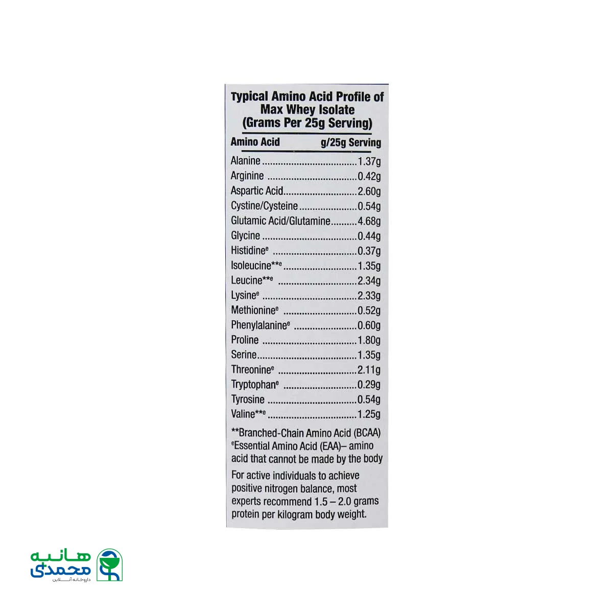 پروتئین وی ایزوله مکس ماسل 908 گرمMax Muscle Whey Isolate 908 g